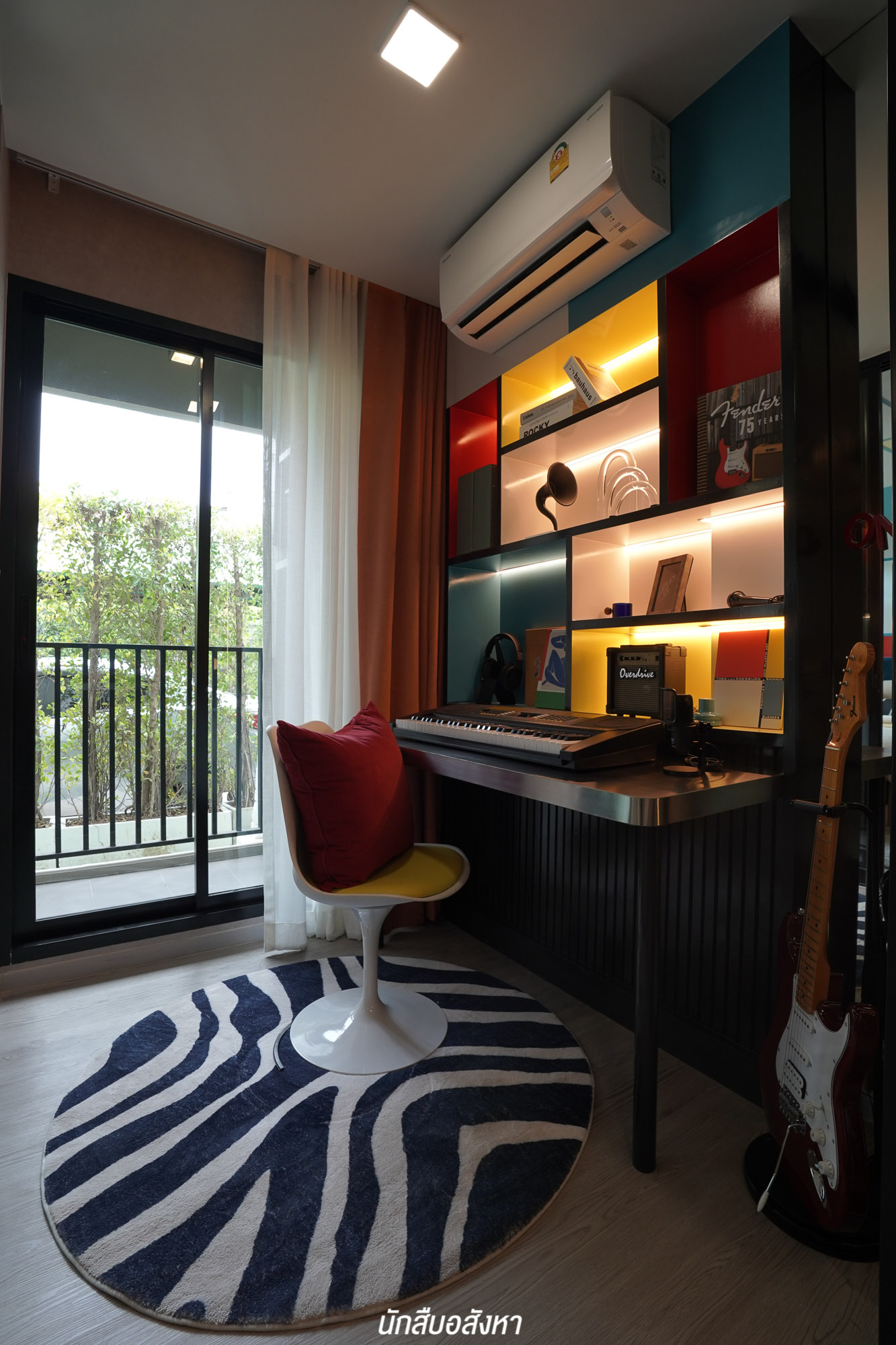 ห้องอเนกประสงค์มีขนาดกำลังดี ติดระเบียงทำให้ห้องดูไม่อึดอัด อีกทั้งยังเชื่อมต่อกับห้องนอน ถ้าวันไหนนั่งทำงานเหนื่อย ๆ สามารถลุกไปนอนได้เลย เพราะใกล้กันมาก อีกทั้งยังเพิ่มความโปร่งให้กับห้อง ดูไม่อึดอัด ใช้งานได้จริง