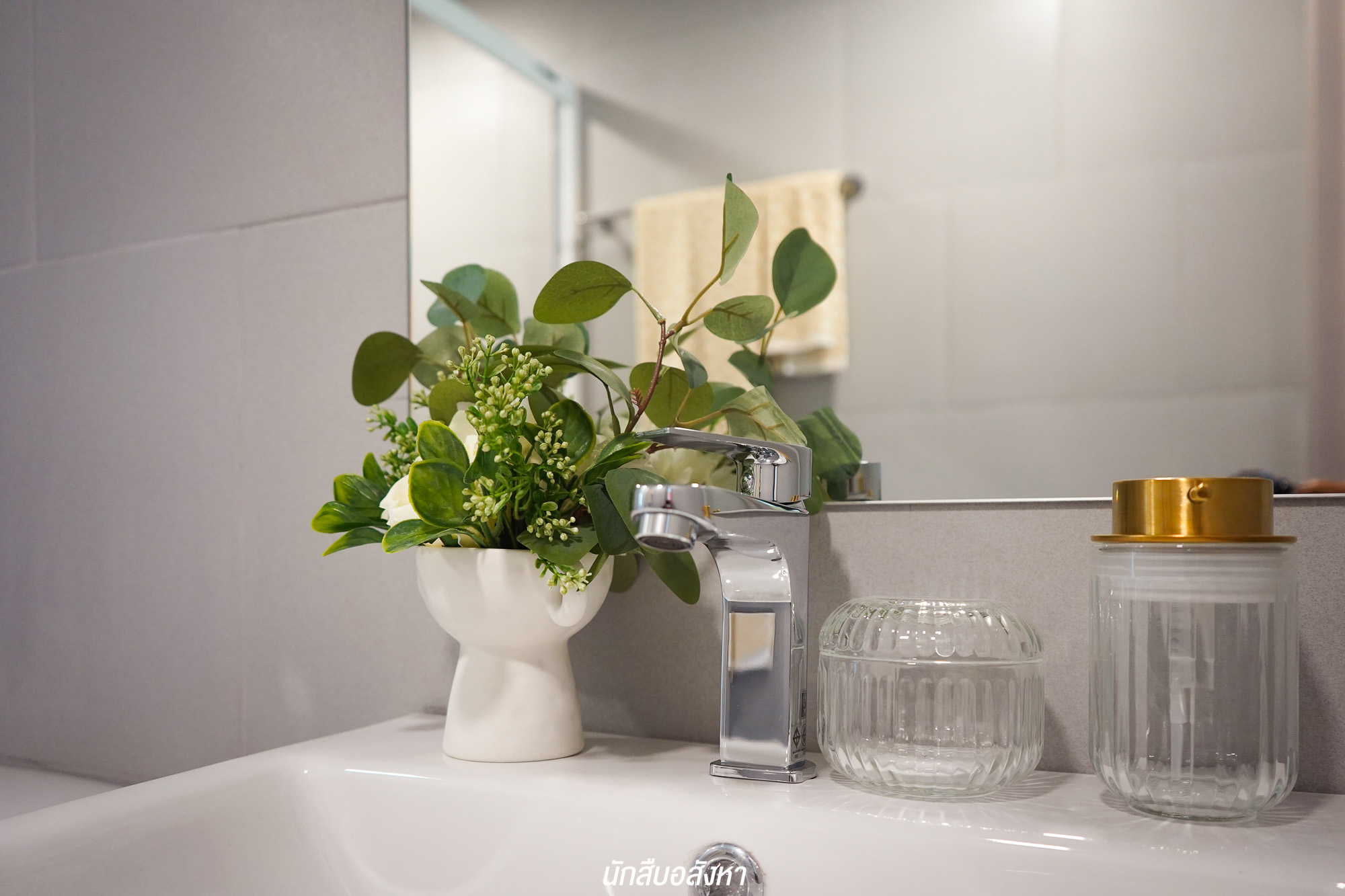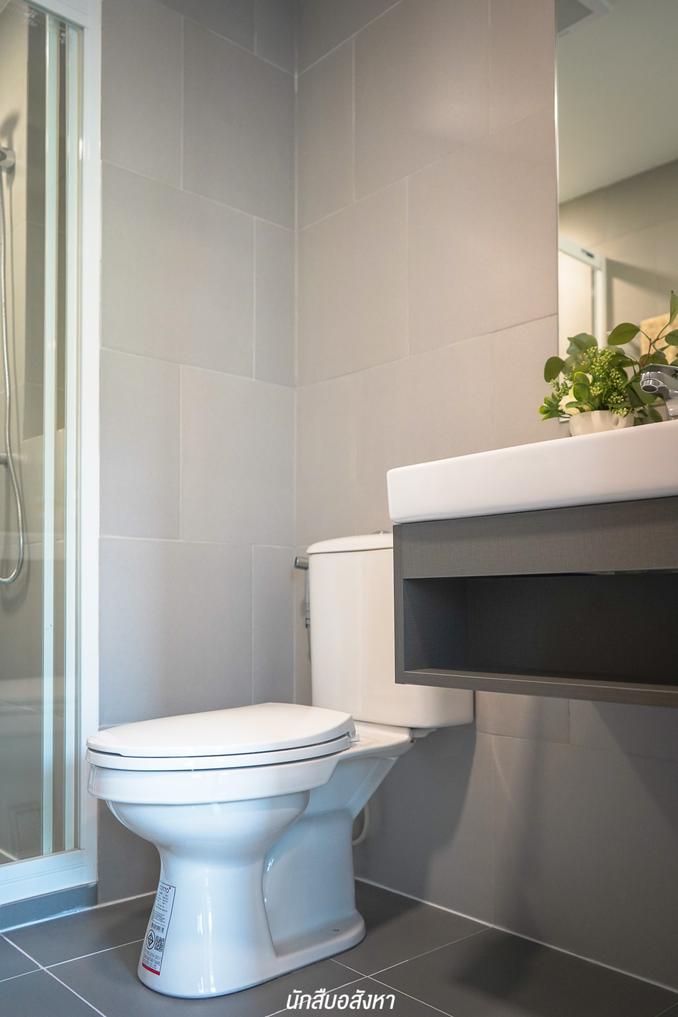 ถัดมาที่ห้องครัว ครัวจะมาพร้อมประตูกระจกบานเลื่อนที่มีไว้สำหรับกั้นโซน นอกจากนี้ก็ยังมีระเบียงซึ่งอยู่ติดกัน เวลาทำอาหารสามารถเปิดประตูระเบียงเพื่อระบายกลิ่นได้ สามารถใช้งานได้จริง ส่วนห้องน้ำออกแบบได้อย่างลงตัว กว้างกว่าที่คิด และโครงการได้เดินระบบท่อน้ำ ก็อกน้ำไว้สำหรับใครที่จะนำเครื่องซักผ้ามาไว้บริเวณระเบียงได้ เราลองไปดูห้องต่อไปกันครับ