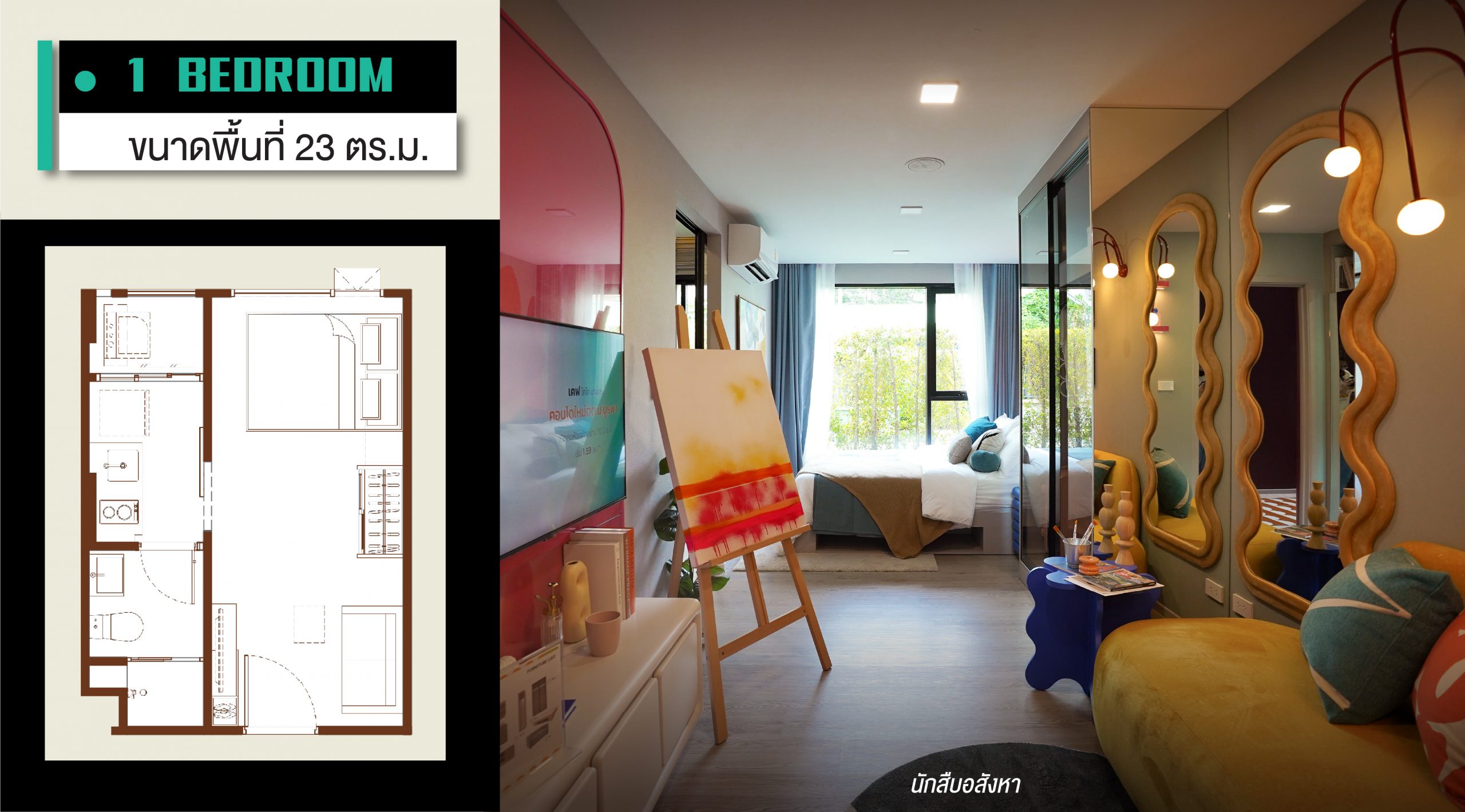 ◾ 1 Bedroom พื้นที่ใช้สอย 23 ตร.ม.