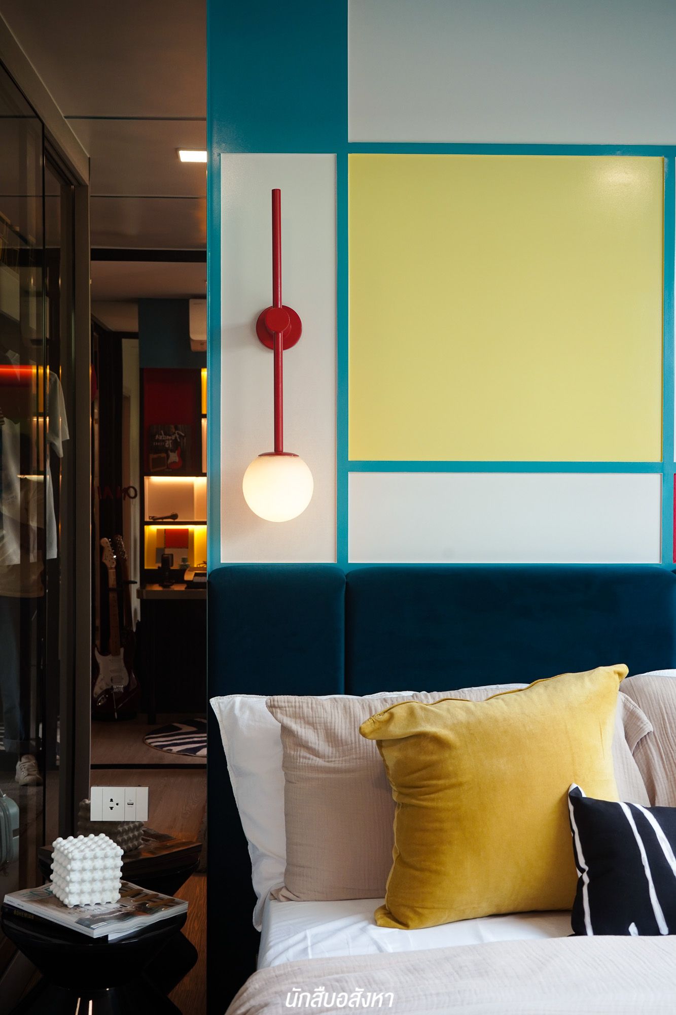 ความน่าสนใจอีกหนึ่งอย่างของห้องนี้คือ โครงการให้หน้าต่างบานใหญ่ติดกันกับบริเวณเตียงนอน ทำให้สามารถมองเห็นวิวได้แบบพาโนรามา เพิ่มความโปร่งรับแสงธรรมชาติ