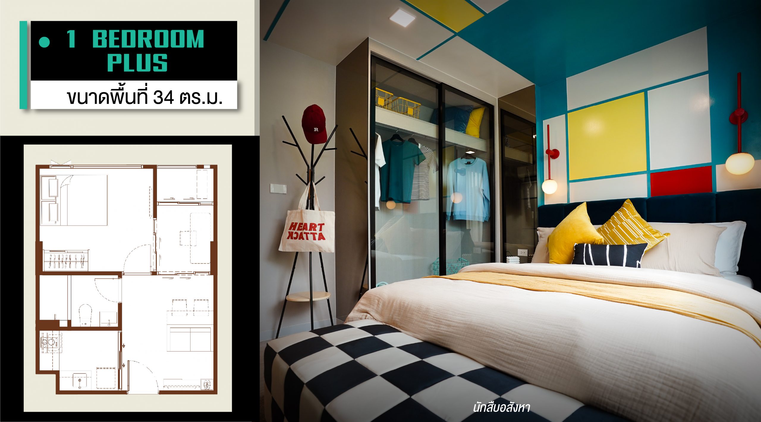 ◾ 1 Bedrooms Plus พื้นที่ใช้สอย 34 ตร.ม.