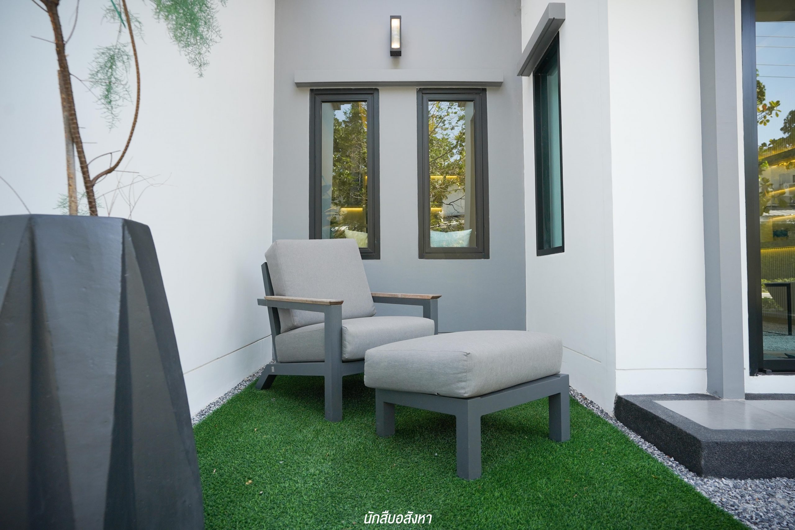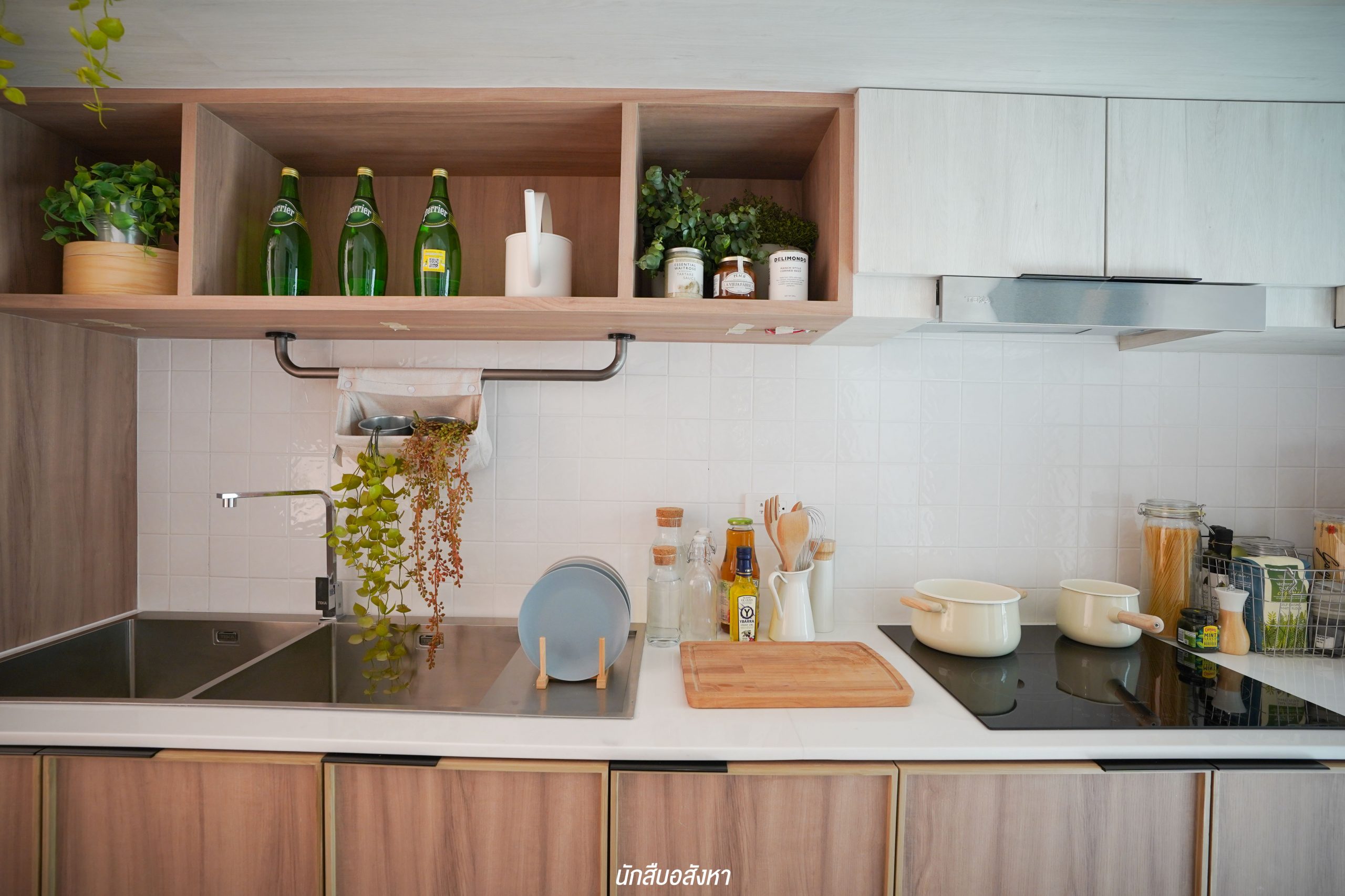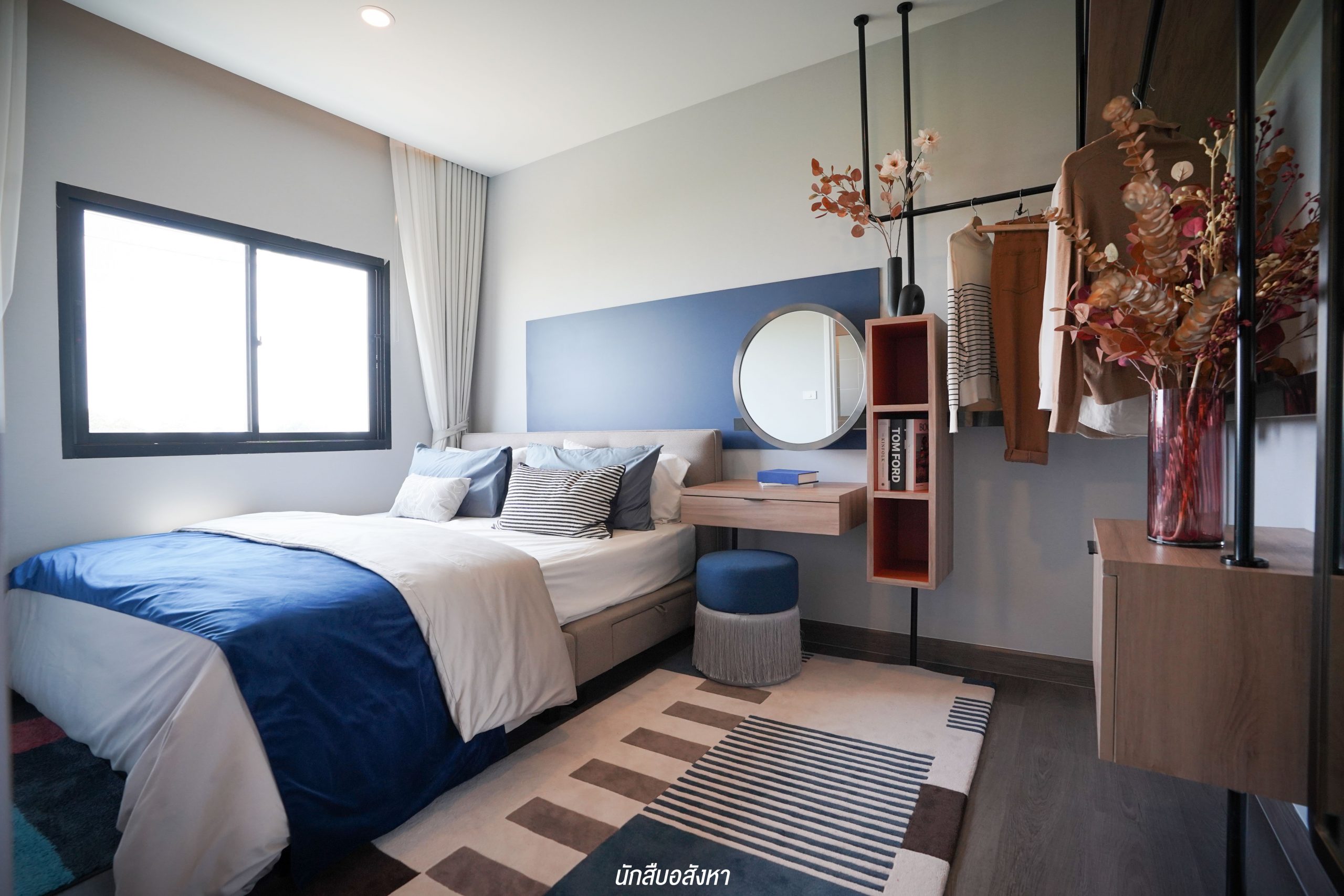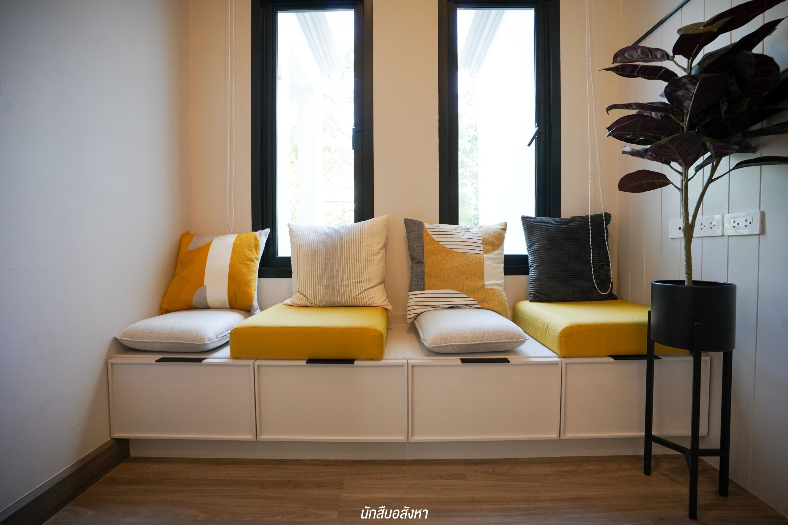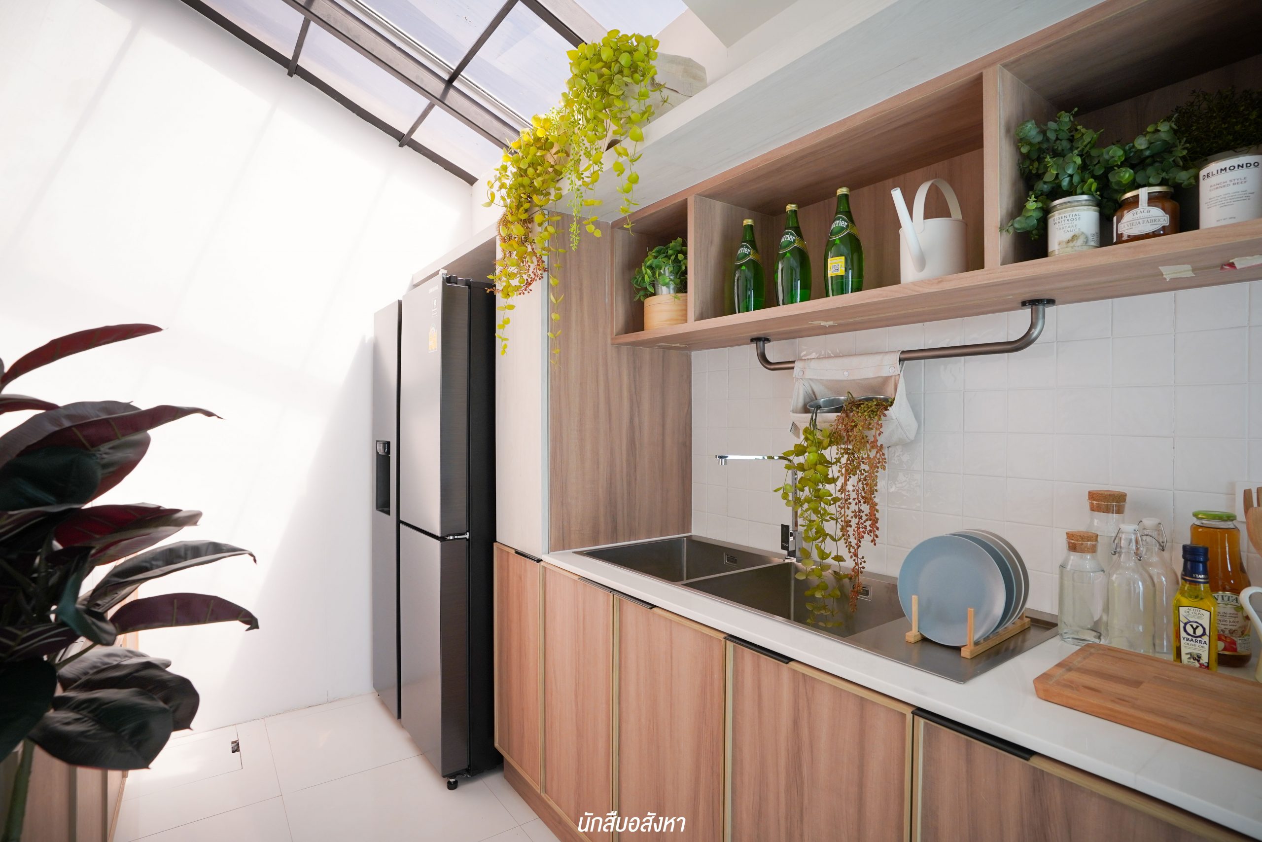 อีกหนึ่งไอเดียดี ๆ ที่บ้านตัวอย่างทำไว้ให้ดู บริเวณหน้าบันไดทำเป็นมุมซักรีด ทำให้เห็นได้ว่า โซนซักล้างไม่จำเป็นต้องอยู่บริเวณหลังบ้านเสมอไป