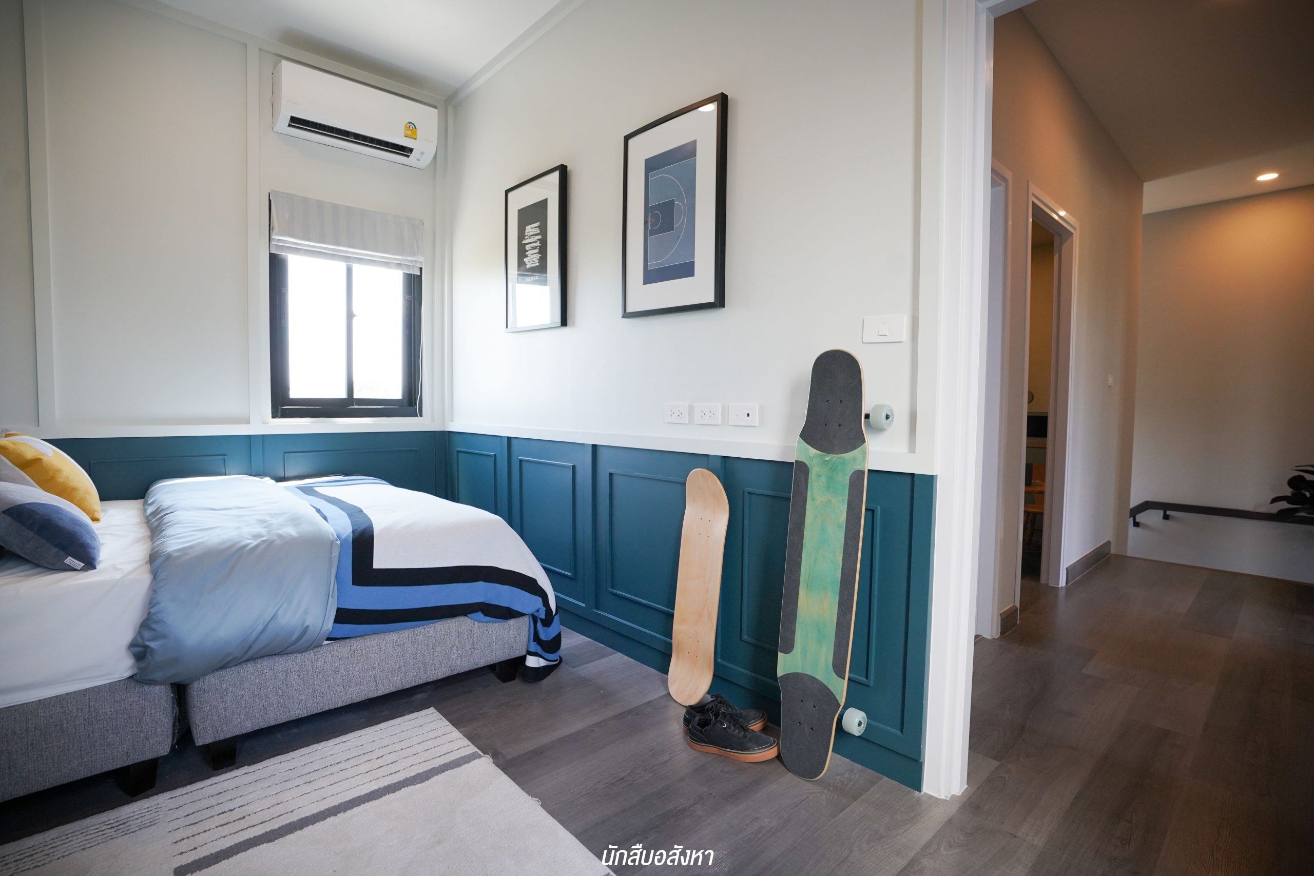 เมื่อขึ้นมาด้านบน จะเป็นพื้นที่ของห้องนอนและห้องน้ำชั้นบน โดยห้องมาสเตอร์จะมาพร้อมกับห้องน้ำในตัว ส่วนห้องนอน 2 และ 3 สามารถใช้ห้องน้ำด้านนอกร่วมกันได้ครับ