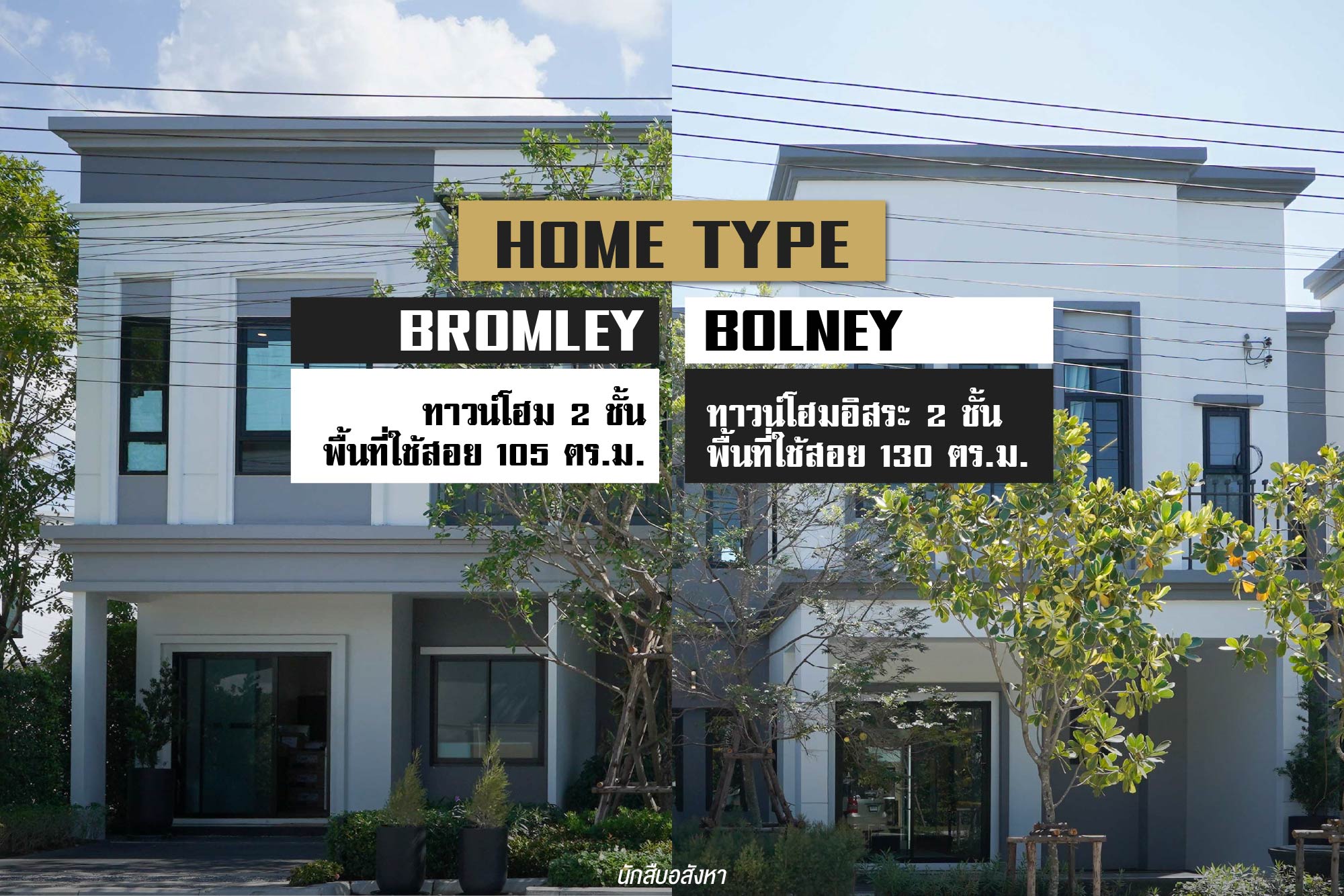มาต่อกันในส่วนของที่พักอาศัยกันบ้างครับ สำหรับรูปแบบของบ้านจะเป็นทาวน์โฮมอิสระและทาวน์โฮม 2 ชั้น สไตล์ English Modern โดยจะมีให้เลือก 2 รูปแบบ ด้วยพื้นที่ใช้สอยตั้งแต่ 105-130 ตร.ม. ขนาดที่ดินเริ่มต้น 17.9 ตร.ว. ขึ้นไป โดยทั้งสองแบบบ้านจะมี Master Bedroom พร้อมกับห้องน้ำส่วนตัว และยังมีห้องอเนกประสงค์ทางด้านชั้นล่างสามารถปรับเปลี่ยนเป็นห้องอื่น ๆ ได้ตามไลฟ์สไตล์ของผู้อยู่อาศัย หรือจะทำเป็นห้องนอนสำหรับผู้สูงอายุก็ได้ครับ ซึ่งแบบบ้านจะมีให้เลือกดังนี้