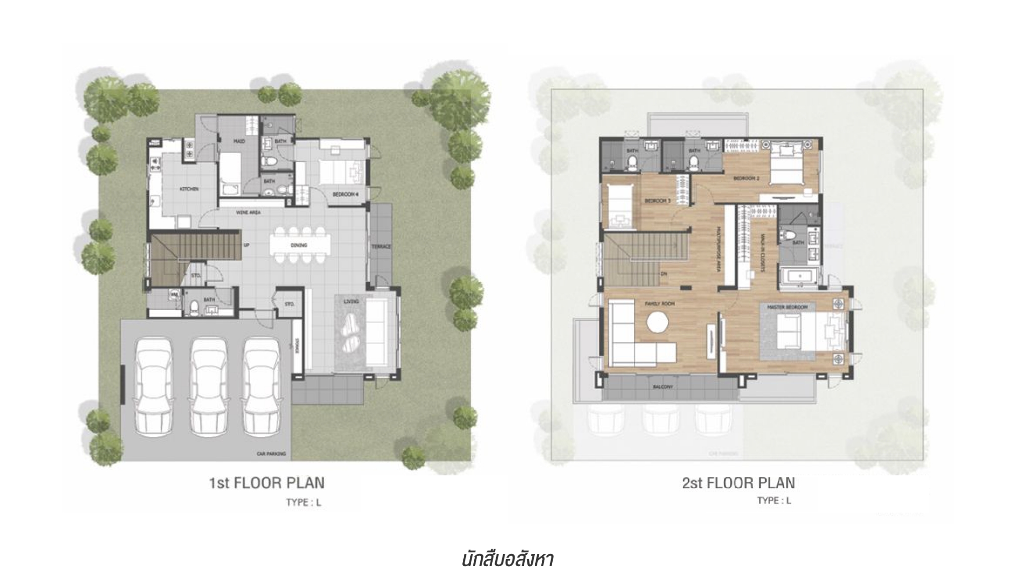 ◼️ แบบ L (AI-CON) 285 ตร.ม. : 4 ห้องนอน 5 ห้องน้ำ 1 ห้องแม่บ้าน 3 ที่จอดรถ