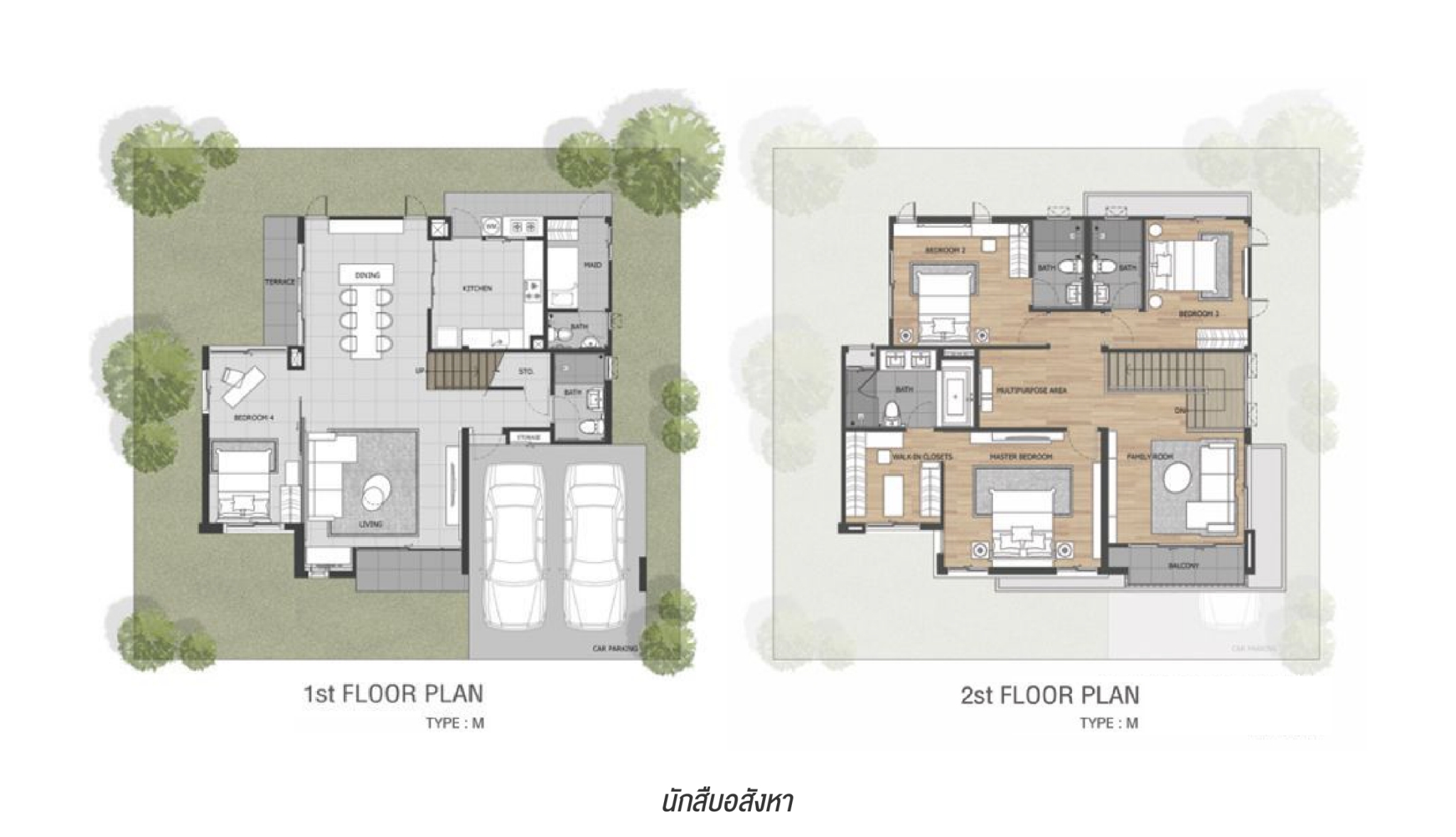 ◼️ แบบ M (AI-CRAF) 240 ตร.ม. : 4 ห้องนอน 4 ห้องน้ำ 1 ห้องแม่บ้าน 2 ที่จอดรถ