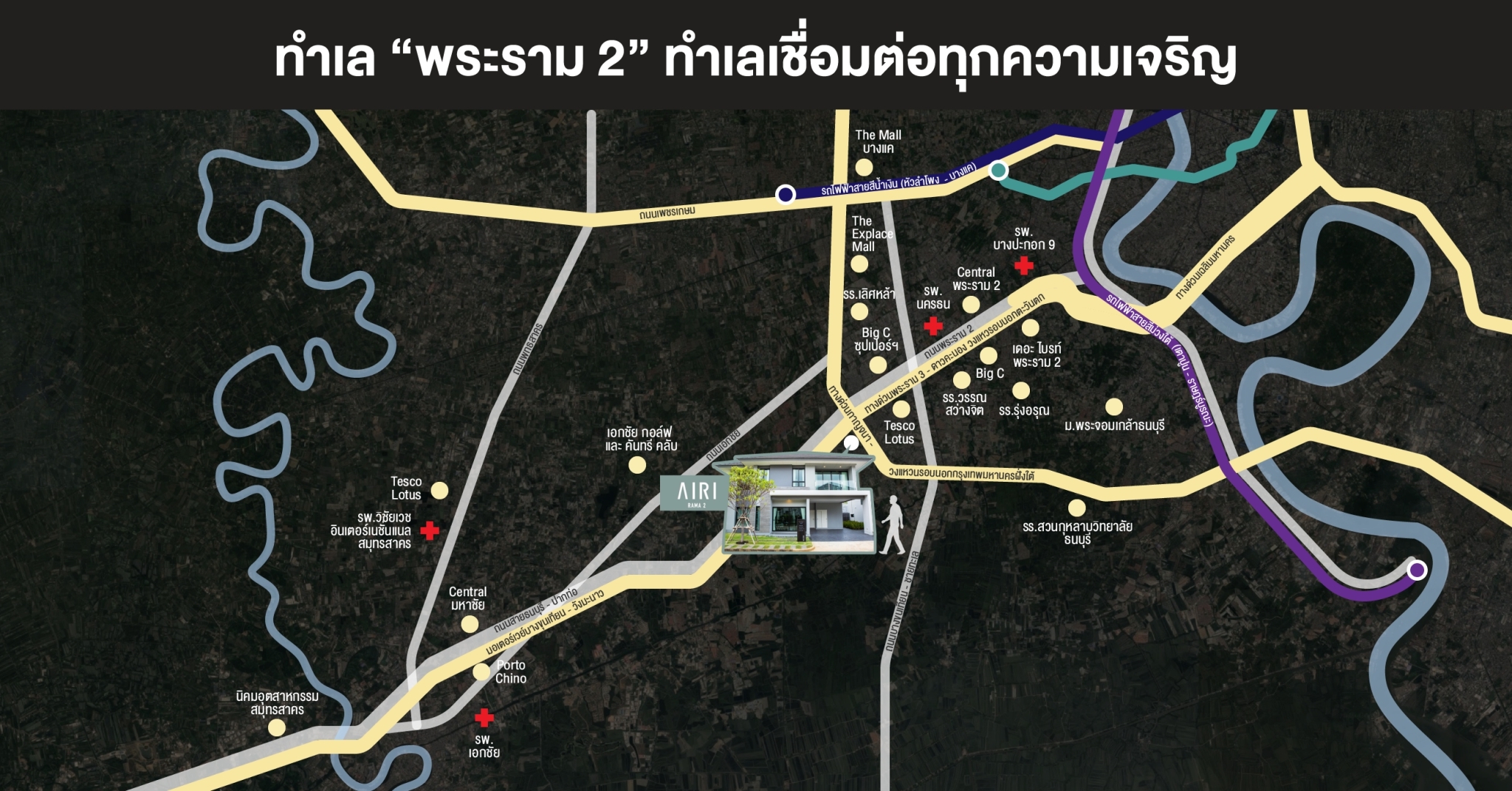 ดังนั้นการที่ตัวโครงการ “AIRI พระราม 2” ตั้งอยู่ในทำเลแห่งนี้จึงถือว่าได้เปรียบเรื่องของการเดินทางเป็นอย่างมาก ซึ่งการเติบโตในเรื่องของการเดินทางนี้แหละครับ ที่ทำให้เหล่า Deverloper ต่างมองเห็นศักยภาพ และเริ่มที่จะมีโครงการอสังหาหลายแบรนด์เกิดขึ้นที่นี่ อย่างตัวโครงการ AIRI พระราม 2 นั้นจะตั้งอยู่ในซอยสวนอาหารวังกุ้ง ที่อยู่ใกล้ถนนพระราม 2 เพียง 700 ม. พื้นที่นี้ค่อนข้างสงบและให้ความเป็นส่วนตัวค่อนข้างสูง ซึ่งรอบตัวโครงการนั้นยังรายล้อมไปด้วยแหล่งอำนวยความสะดวกมากมายซึ่งผมสรุปจุดเด่นของทำเลมาไว้ดังนี้ครับ