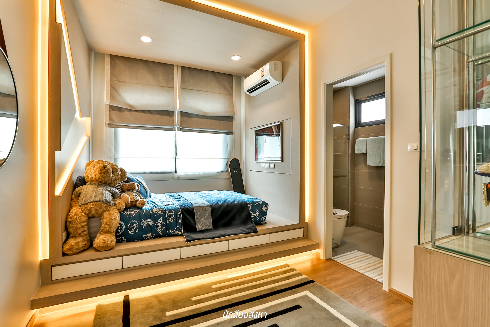 ในส่วนของชั้นที่ 2 ของตัวบ้านนั้น จะเจอกับ Family Area ที่ใช้เป็นมุมพักผ่อนสำหรับครอบครัว นอกจากนี้ยังมี Multi Purpose Area ที่อยู่ด้านขวามือซึ่งสามารถปรับให้เป็นชั้นวางของ หรือจะจัดให้เป็นห้องพระก็ได้ เพราะพื้นที่ในส่วนนี้ทางโครงการให้มาเพียงพอต่อการใช้งานเลยครับ