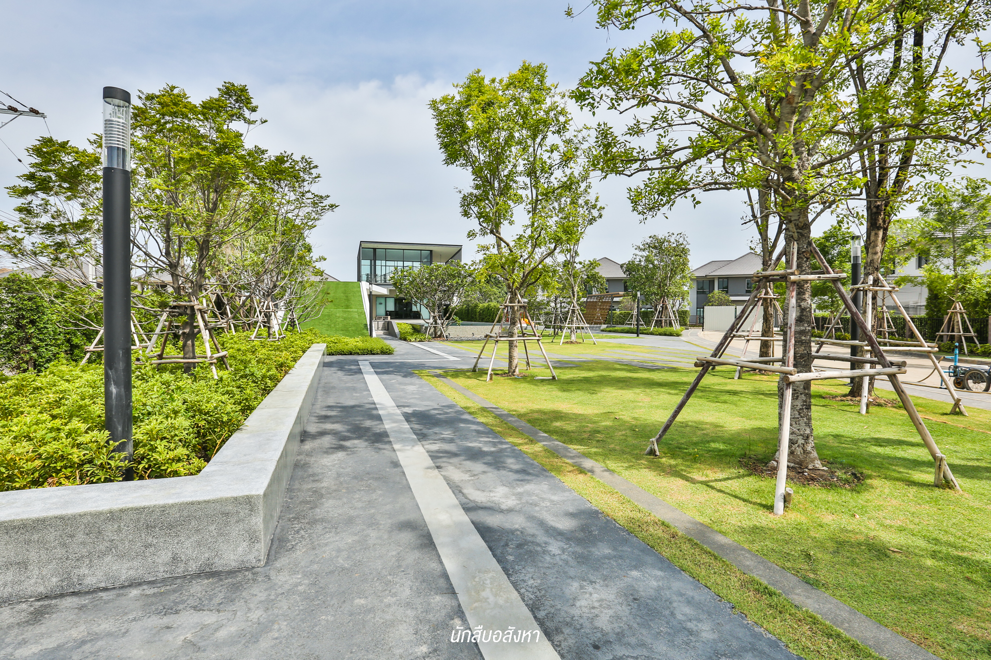 ในส่วนของส่วนกลางของที่นี่นะครับ พื้นที่ส่วนกลางถูกออกแบบภายใต้แนวคิด “Play Hide and Seek with Elegance” ที่ให้ความร่มรื่นเพราะทางโครงการลงต้นไม้ใหญ่ไว้ค่อนข้างเยอะครับ โดยพื้นที่ส่วนกลางจะเชื่อมต่อกันตั้งแต่ Outdoor Garden ไปจนถึง Clubhouse เรามาดูส่วนกลางของโครงการนี้ทีละส่วนกันเลยครับ