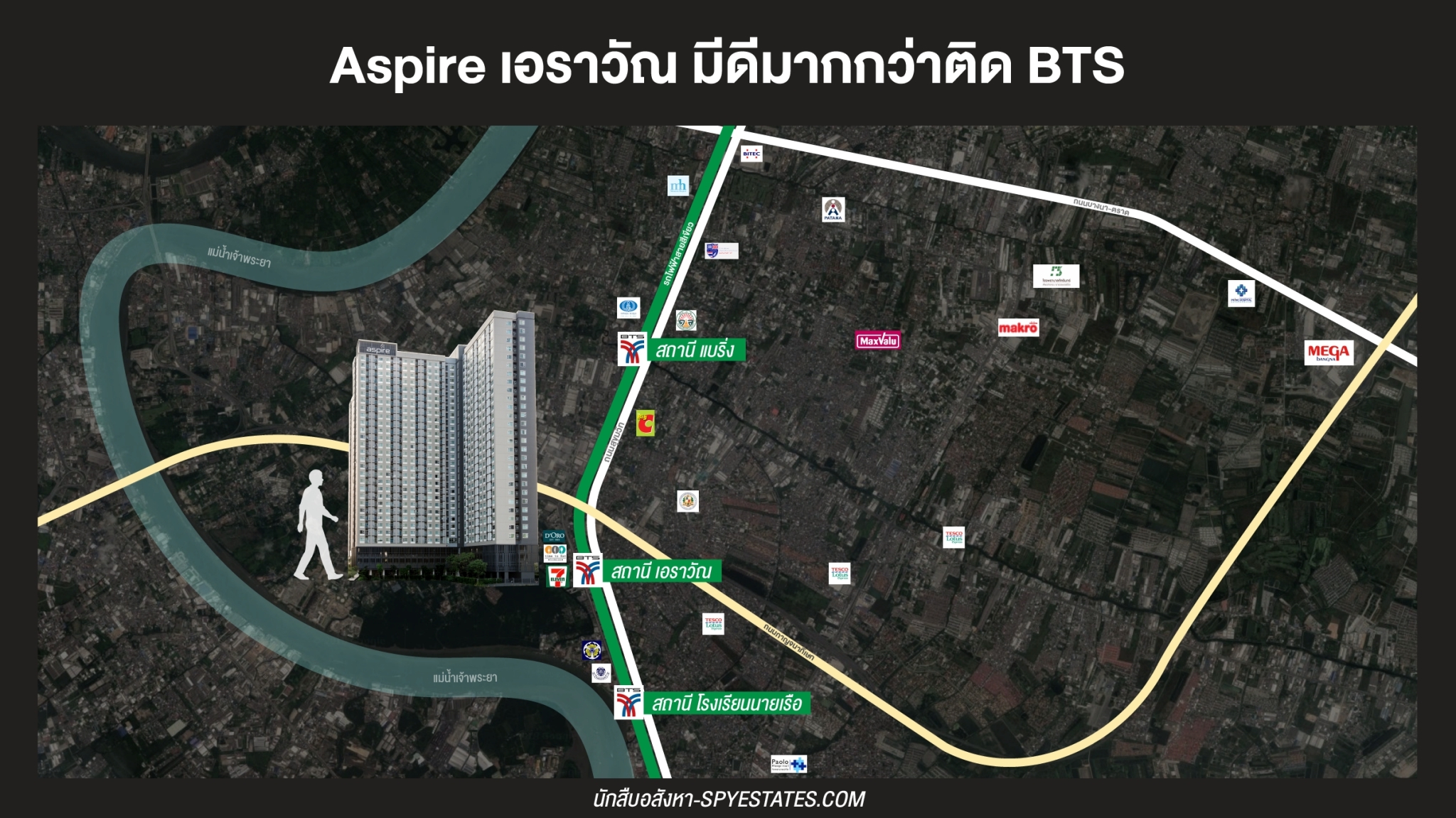 “Aspire เอราวัณ” คอนโดพร้อมอยู่ที่มีทำเลที่ดี เนื่องจากติดถนนใหญ่อย่างถนนสุขุมวิท รวมถึงหน้าโครงการติดบันไดทางขึ้น รถไฟฟ้าส่วนต่อขยายสายสีเขียว สถานี “ช้างเอราวัณ” เรียกได้ว่า เดิน 1 ก้าวถึง BTS แล้วครับ แต่ถ้าทำเลจะดีแค่ติด BTS ผมก็มองว่าเฉยๆ ไปแล้ว แต่โครงการนี้มีดีมากกว่าติด BTS เท่านั้นเรามาลองดูกันครับว่า นอกจากติด BTS ช้างเอราวัณ ทำเลของโครงการนี้มีดีอะไรอีกบ้าง