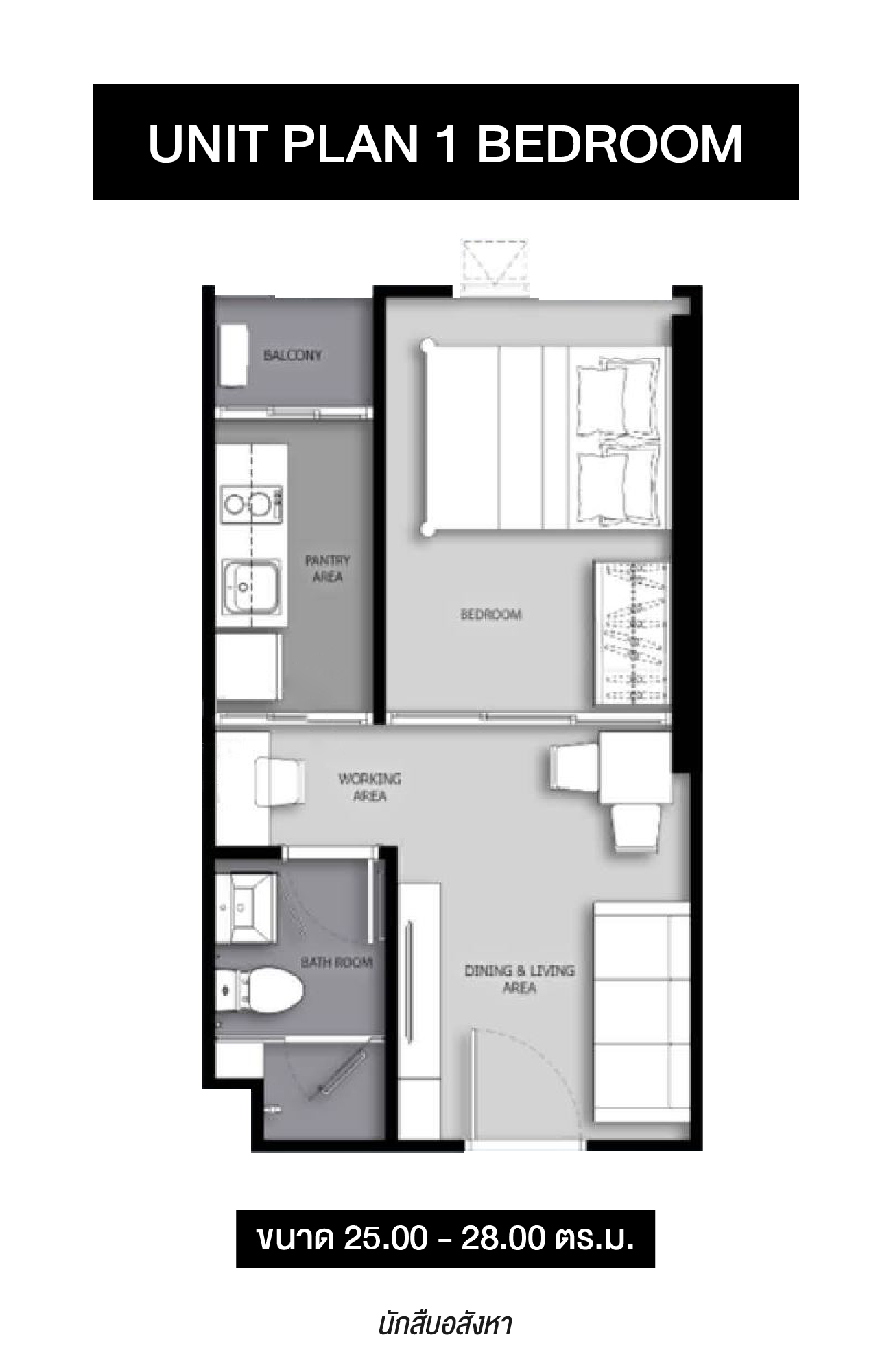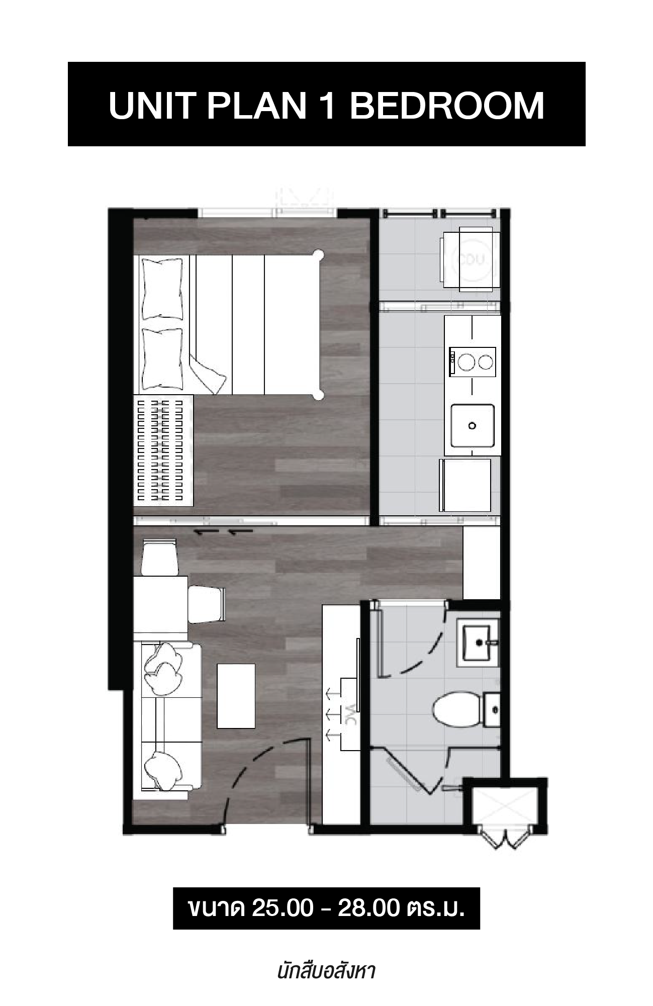 1 Bedroom ขนาด 25.00 – 28.00 ตร.ม.