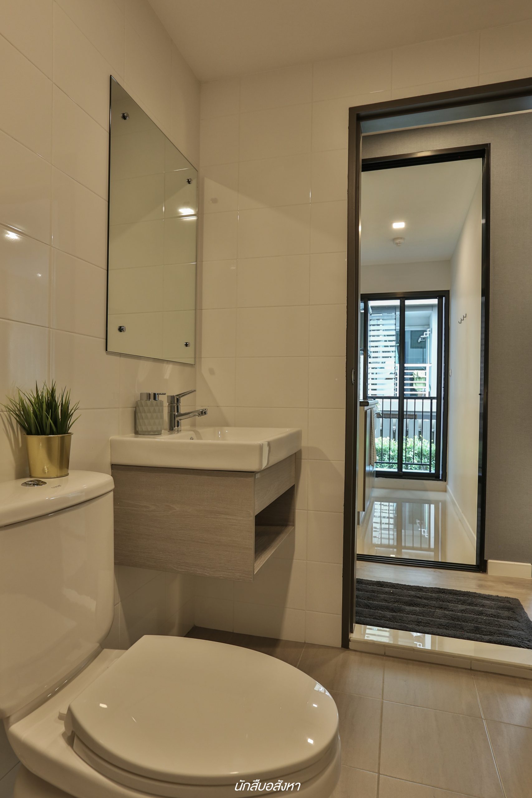 มาเริ่มกันที่ห้องตัวอย่างของตึก BLoft A และ B กันครับ ห้องนี้จะเป็นห้องรูปแบบ 1 Bedroom ขนาด 25.00 – 28.00 ตร.ม. ครับ พื้นที่ค่อนข้างใหญ่ เมื่อเปิดประตูเข้ามาจะเจอกับพื้นที่ของ Living Area กับ Dining Area ก่อนเลยครับ พื้นที่นี้ผมว่าโครงการให้มาค่อนข้างกว้าง อย่างเซตโซฟาหน้าทีวีก็สามารถวางได้ตั้งแต่ 2 – 4 ที่นั่ง โดย Space ระหว่างหน้าทีวียังเหลืออีกค่อนข้างเยอะ ส่วนมุม Dining Area ที่ Combine กันนั้นก็เลือกได้ครับว่าจะจัดเป็น 2 หรือ 4 ที่นั่ง ส่วนอีกมุมที่ผมชอบก็คือมุม Multipurpose บริเวณหน้าห้องน้ำและห้องครัวที่สามารถทำเป็นมุมทำงานหรือมุมแต่งหน้าสำหรับสาวๆ ก็ได้ ในขณะเดียวกันฟังก์ชันครัวของที่นี่คือครัวปิดครับ ทางโครงการจัดครัวมาเป็นรูปแบบ I – Shaped Kitchen เพื่อช่วยประหยัดพื้นที่ และครัวอยู่ติดกับระเบียง ถือว่าแปลนห้องค่อนข้างดีเลยครับ ส่วนตัวระเบียงเองก็เป็นขนาดที่ใช้งานได้จริง ในขณะเดียวกันนั้น พื้นที่ของห้องนอนนั้นถือว่ากว้างมากครับ Built-in ตู้เสื้อผ้าและเฟอร์นิเจอร์ได้อีกครับ ห้องนี้ค่อนข้างลงตัวกับการอยู่เป็นคู่มากครับ แต่คนโสดที่ชอบห้องแบบพื้นที่กว้างแบบ Full Area ก็สามารถอยู่ได้เช่นกันครับ