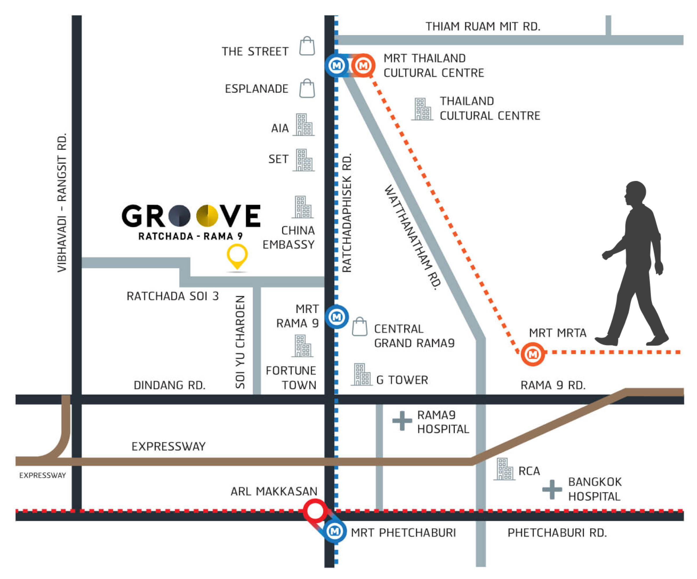 ◼️ 900 เมตร MRT ศูนย์วัฒนธรรม