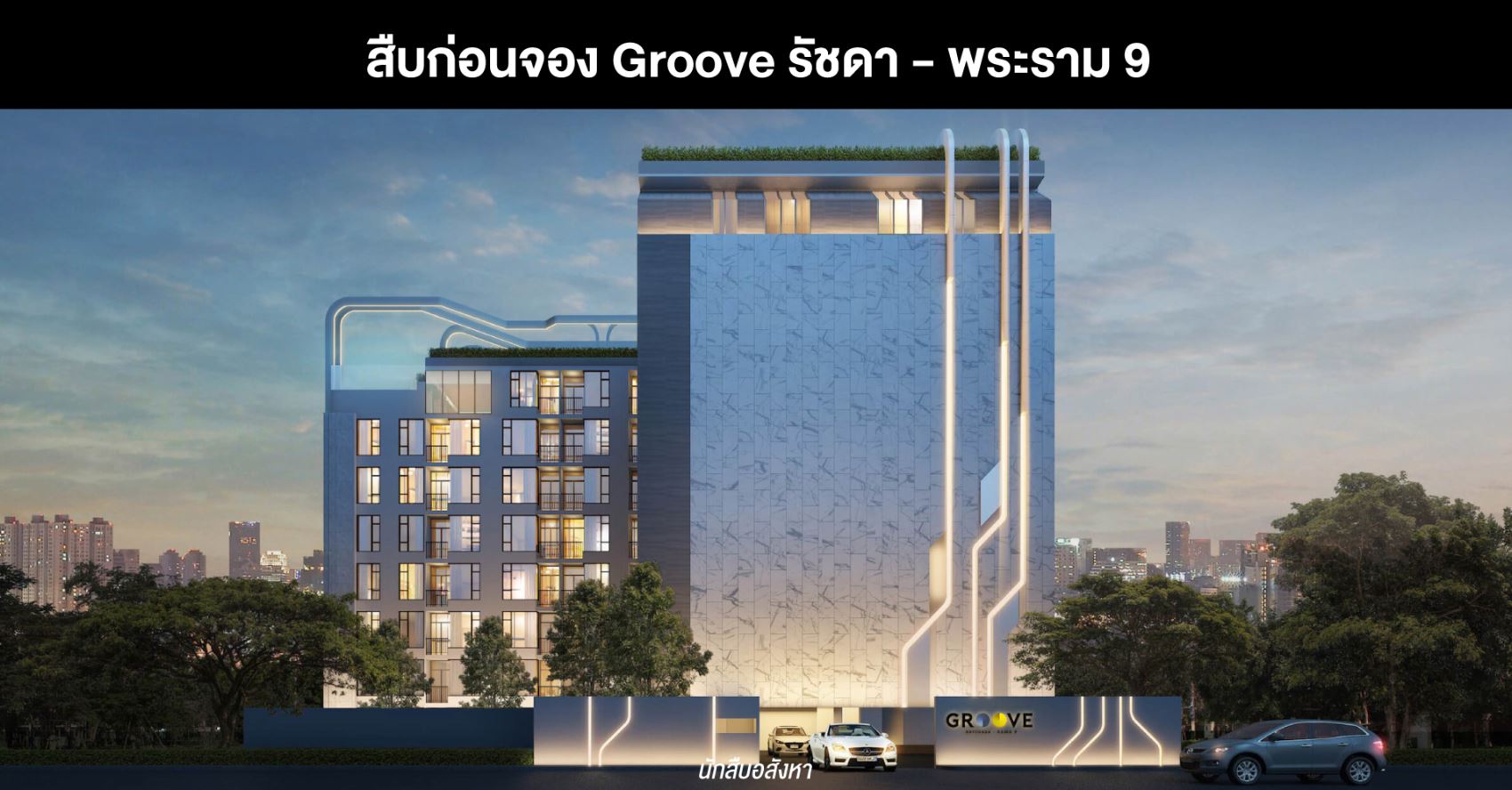 และโครงการที่ผมมองว่าน่าสนใจอีกโครงการหนึ่งที่ตั้งอยู่บนทำเลรัชดา – พระราม 9 ก็คือโครงการ “GROOVE รัชดา – พระราม 9” จาก Divine Development เป็นคอนโด Low Rise บนพื้นที่ส่วนตัวด้วยจำนวนยูนิตเพียง 154 ยูนิต แต่กลับกัน ส่วนกลางของที่นี่ถือว่าจัดเต็มมากครับ และรูปแบบห้องยังมีให้เลือกค่อนข้างหลากหลาย รองรับผู้คนหลากไลฟ์สไตล์ ซึ่งตัวโครงการนั้นจะตั้งอยู่ในซอยรัชดาภิเษก 3 เส้นทางที่สามารถเชื่อมต่อไปยังถนนเส้นหลักได้ถึง 3 สาย คือ ถนนรัชดาภิเษก, ถนนดินแดง และถนนวิภาวดี ทำให้การเดินทางค่อนข้างสะดวก และยิ่งไปกว่านั้นโครงการยังอยู่ใกล้ MRT สถานีพระราม 9 ในระยะไม่เกิน 1 กม. อีกด้วยครับ ไม่ว่าจะเดินทางด้วยรถยนต์ส่วนตัว หรือโดยสารสาธารณะก็ถือว่าสะดวกสบาย