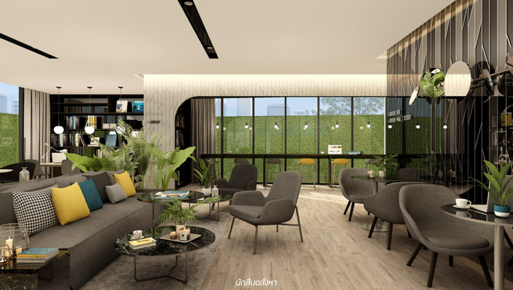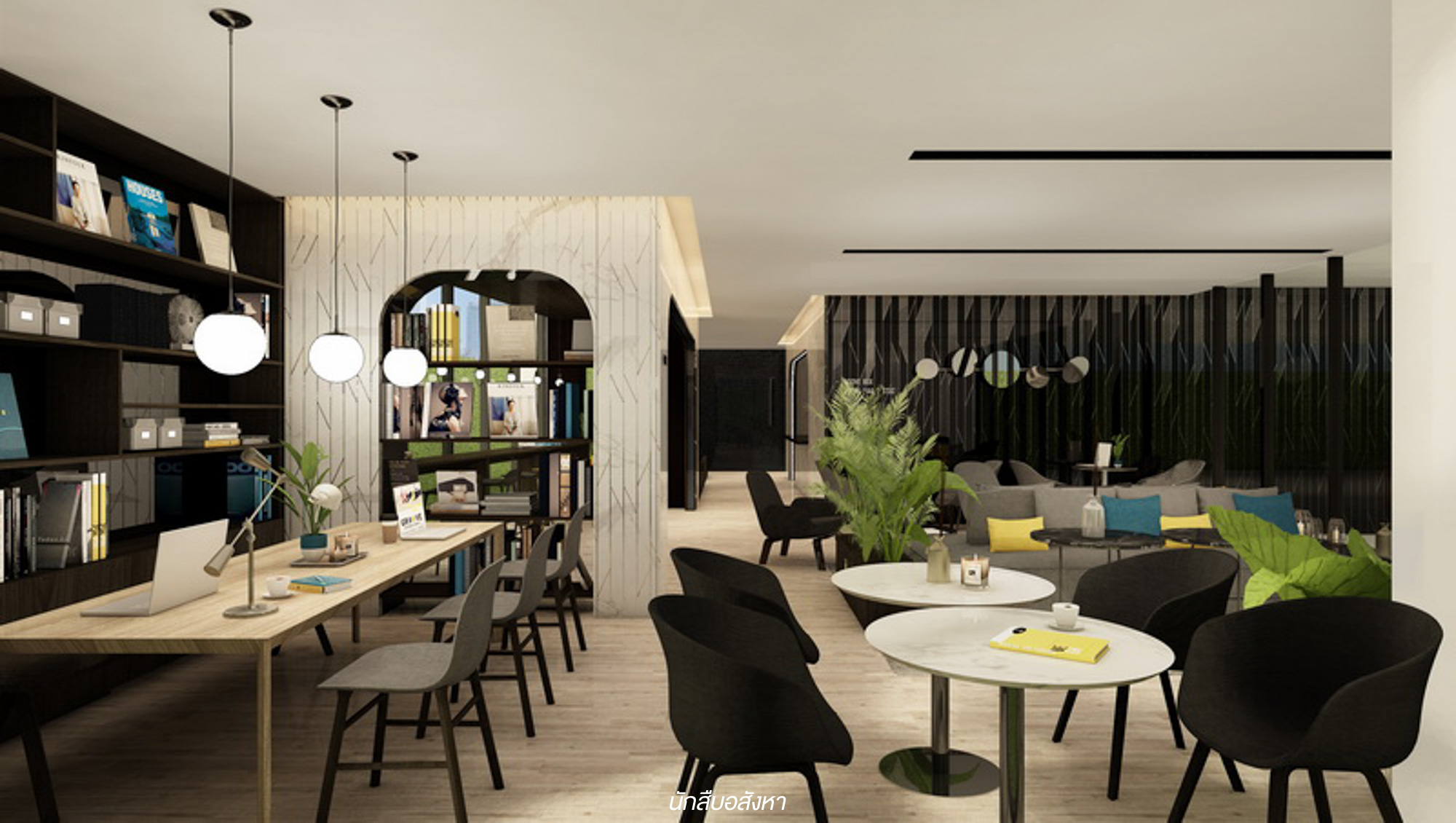 Co-Working Space : สำหรับพื้นที่นี้จะเชื่อมต่อกับโซน Lobby เลยครับ เป็นอีกพื้นที่สำหรับลูกบ้านที่จะสามารถเข้ามานั่งทำงาน อ่านหนังสือได้ ซึ่งโครงการมีจัดวางโต๊ะนั่งหลากหลายมุมทั้งแบบกลุ่ม แบบเดี่ยว รองรับลูกบ้านได้อย่างเพียงพอ