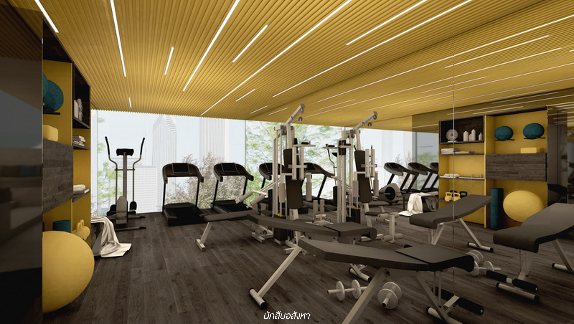 Fitness : พื้นที่ออกกำลังกายของโครงการค่อนข้างดูมีสีสันเลยครับ ผมว่าดีไซน์ออกมาได้สวยดี มีกระจกทรงสูงด้านข้างสำหรับลูกบ้านไว้เทควิวยามออกกำลังกายได้ด้วย แถมภายในยังมีอุปกรณ์การออกกำลังกายทั้งแบบ Weight Training และ Cardio มาให้แบบจัดเต็ม