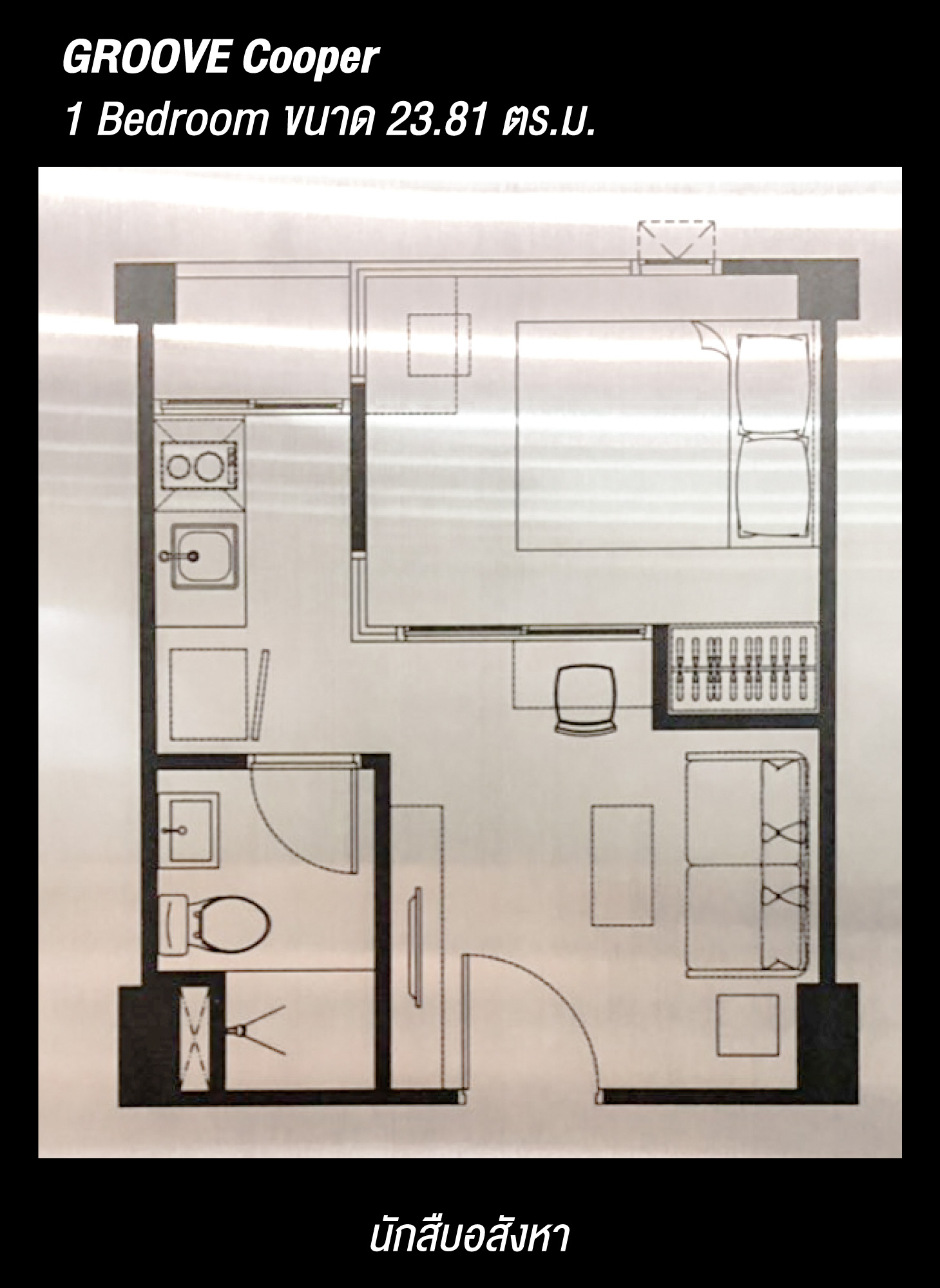 ◼️ GROOVE Cooper : 1 Bedroom ขนาด 23.81 ตร.ม.