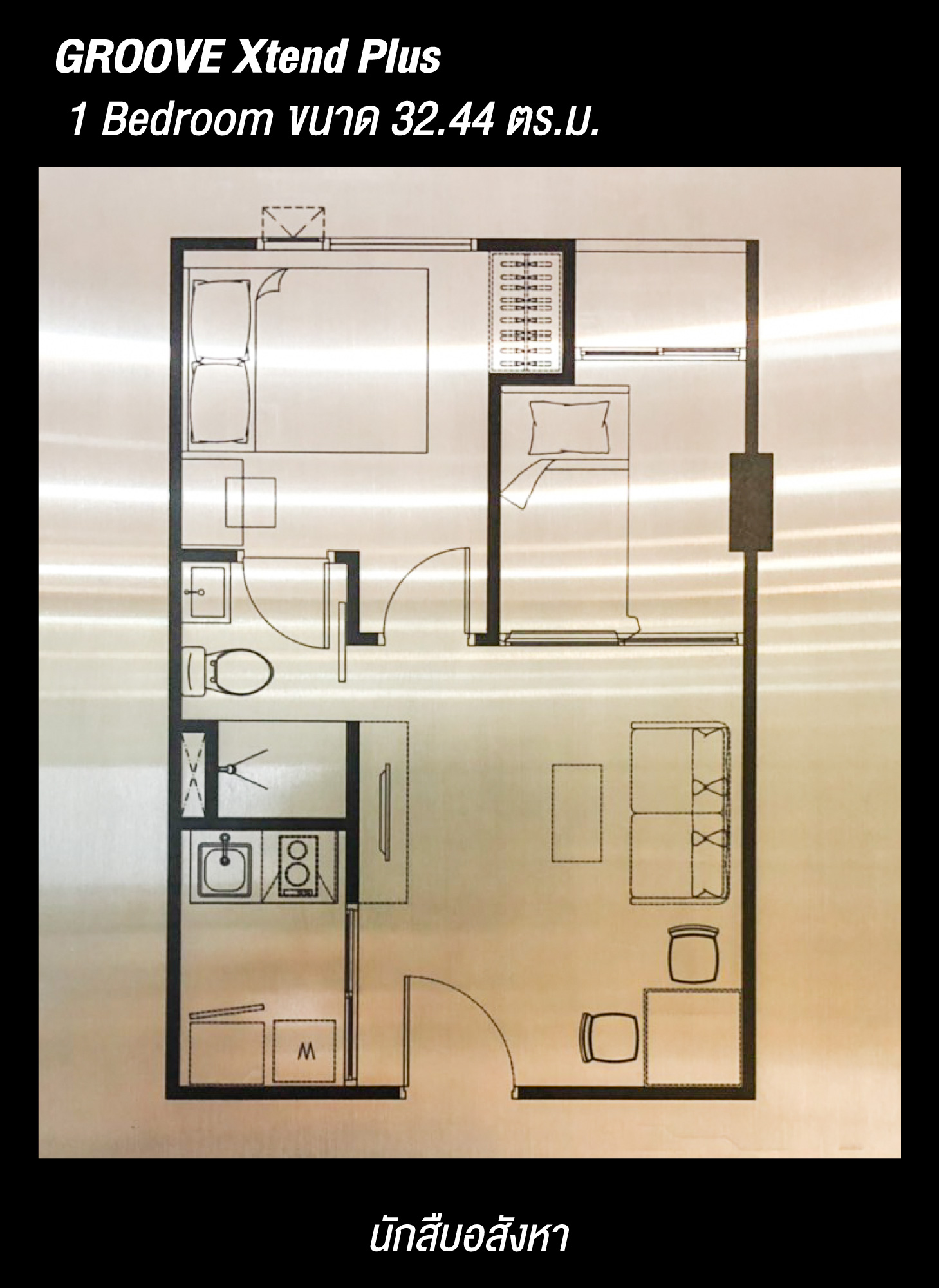 ◼️ GROOVE Xtend Plus : 1 Bedroom ขนาด 32.44 ตร.ม.