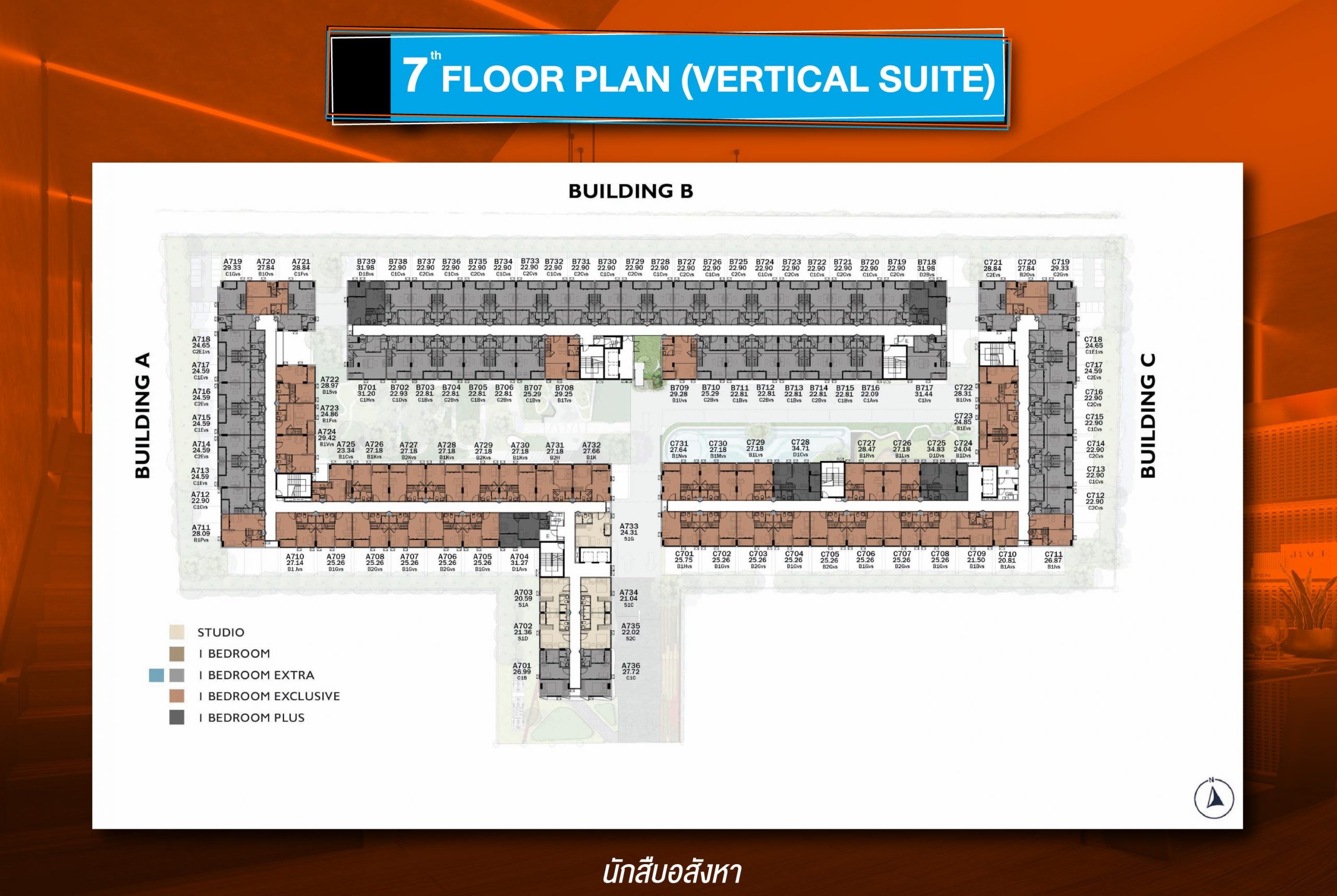 นอกจากห้อง 1 Bedroom Extra ขนาด 28.31 ตร.ม. ที่ทางโครงการทำเป็นเตียงคู่มาให้ที่ผมว่าน่าสนใจแล้ว ส่วนตัวผมเองค่อนข้างชอบห้องรูปแบบ VERTICAL SUITE ของโครงการมากครับ เพราะราคาเฉลี่ยของห้อง Type นี้ยังเป็นราคาที่เอื้อมถึง ผมว่าค่อนข้างคุ้มค่าเลยครับ บวกกับฟังก์ชันที่เพิ่มมากขึ้น ปรับเปลี่ยนได้เยอะ ตามการอยู่อาศัยจริง ห้อง Type นี้จะอยู่ชั้น 7 เป็น Exclusive Floor และจากที่ได้ไปสัมผัสโลเคชั่นมาผมค่อนข้างชอบห้องที่อยู่ตรงตึกบี เนื่องจากด้านหลังจะค่อนข้างเคลียร์ เพราะเป็นวิวด้านหลังที่ไม่มีตึกบังครับ ซึ่งหากใครมองว่า Type ของห้องตัวอย่างอาจจะมีพื้นที่ใช้สอยไม่เพียงพอ ก็สามารถขยับพื้นที่ใช้สอยไปที่ห้องขนาด 25.26 หรือ 28.31 ตร.ม. ก็ได้ครับ เพราะข้อดีของรูปแบบห้องโครงการ “KAVE ศาลายา” ก็คือมีให้เลือกเยอะมาก ส่วนเรื่องทิศทางของห้อง หลายคนอาจจะชอบห้องแปลนมุม อย่างผมเองจะค่อนข้างชอบห้องทิศใต้ เพราะรับลมได้ค่อนข้างดี และยิ่งหากเป็นชั้นที่สูงขึ้น ก็จะได้ความเป็นส่วนตัวเพิ่มขึ้นมาอีกด้วยครับ แต่หากใครที่ไม่ได้ติดเรื่องความเป็นส่วนตัวมากนัก ห้องพักชั้นล่างๆ ก็ค่อนข้างน่าสนใจเลยทีเดียว โดยเฉพาะห้องด้านในที่สามารถเทควิวส่วนกลางทั้งสระว่ายน้ำ หรือสวนร่มรื่นของโครงการก็ได้ครับ