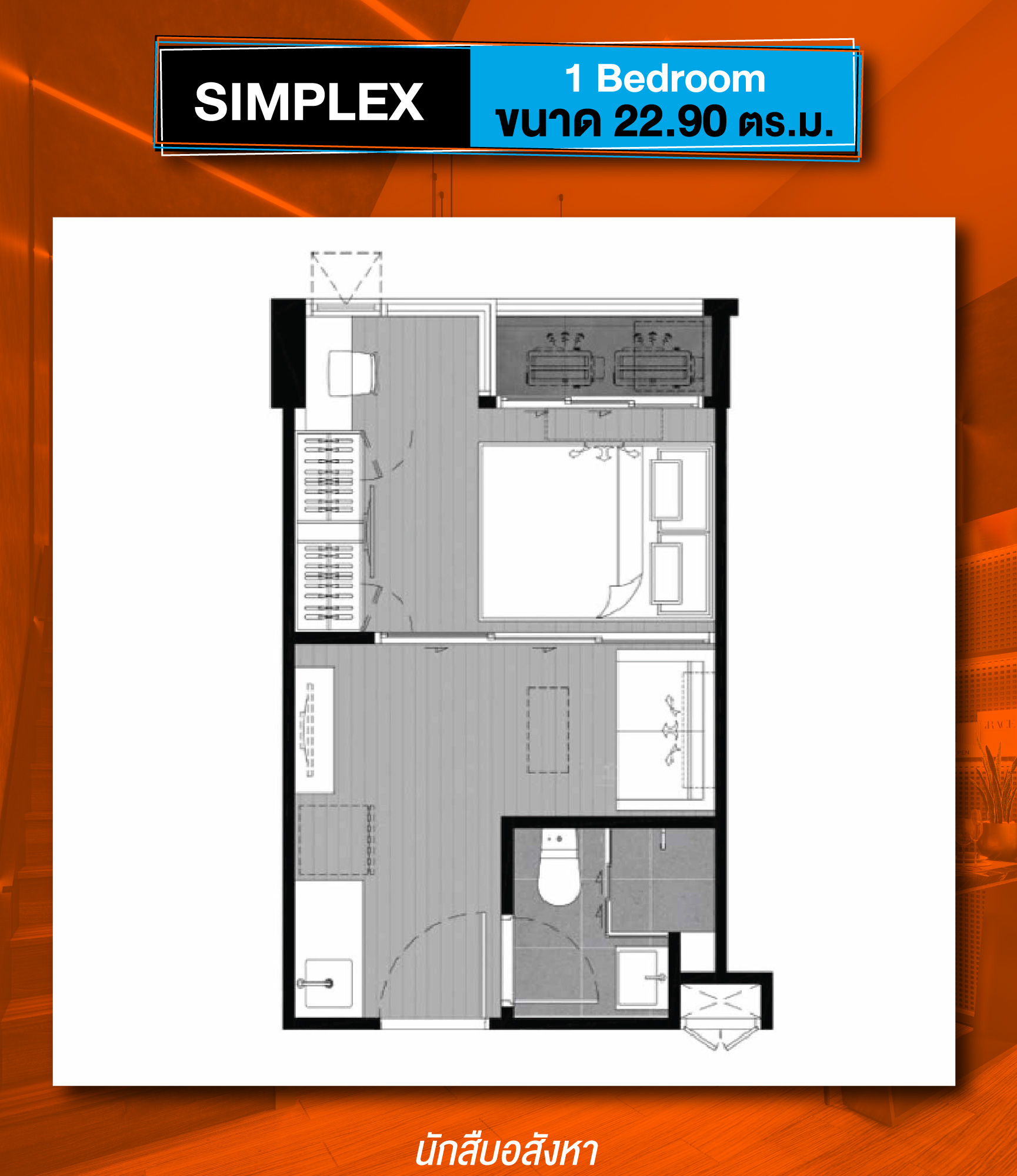 ห้อง 1 Bedroom ขนาด 22.90 ตร.ม.