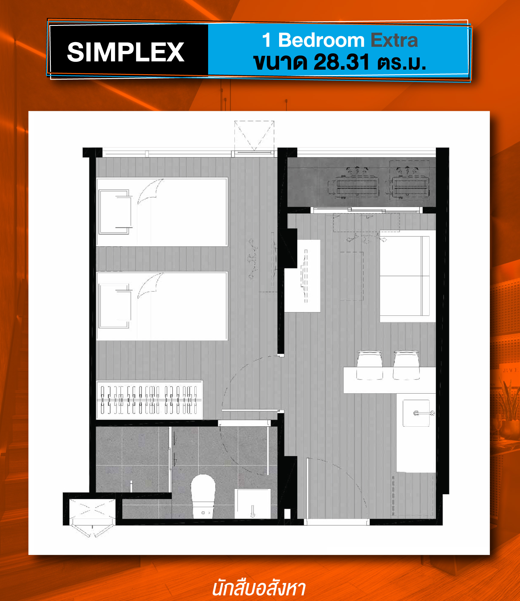 ห้อง 1 Bedroom Extra ขนาด 28.31 ตร.ม.