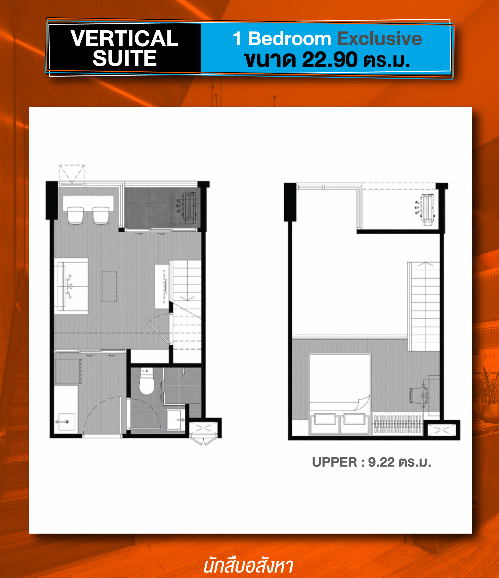 ปิดท้ายกันที่ห้องรูปแบบ VERTICAL SUITE กันบ้างครับ ห้องนี้จะเป็นห้อง 1 Bedroom Exclusive ขนาด 22.90 ตร.ม. ซึ่งความพิเศษของห้องนี้ก็คือชั้นลอยนั่นเองครับ Floor To Ceiling รวมทั้งหมดจะอยู่ที่ 4.8 เมตร ลองไปดูบรรยากาศภายในห้องนี้กันครับ