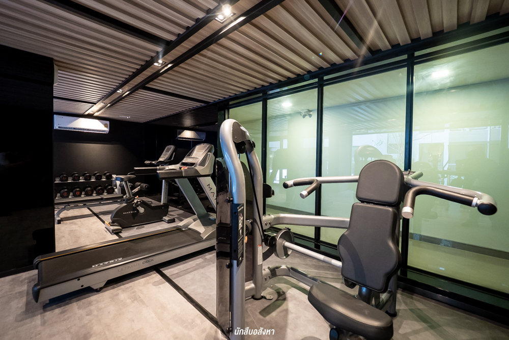 ห้องฟิตเนสที่มีอุปกรณ์พอใช้ได้ เล่นออกกำลังกายไปก็ชมวิวสระว่ายน้ำไปครับ