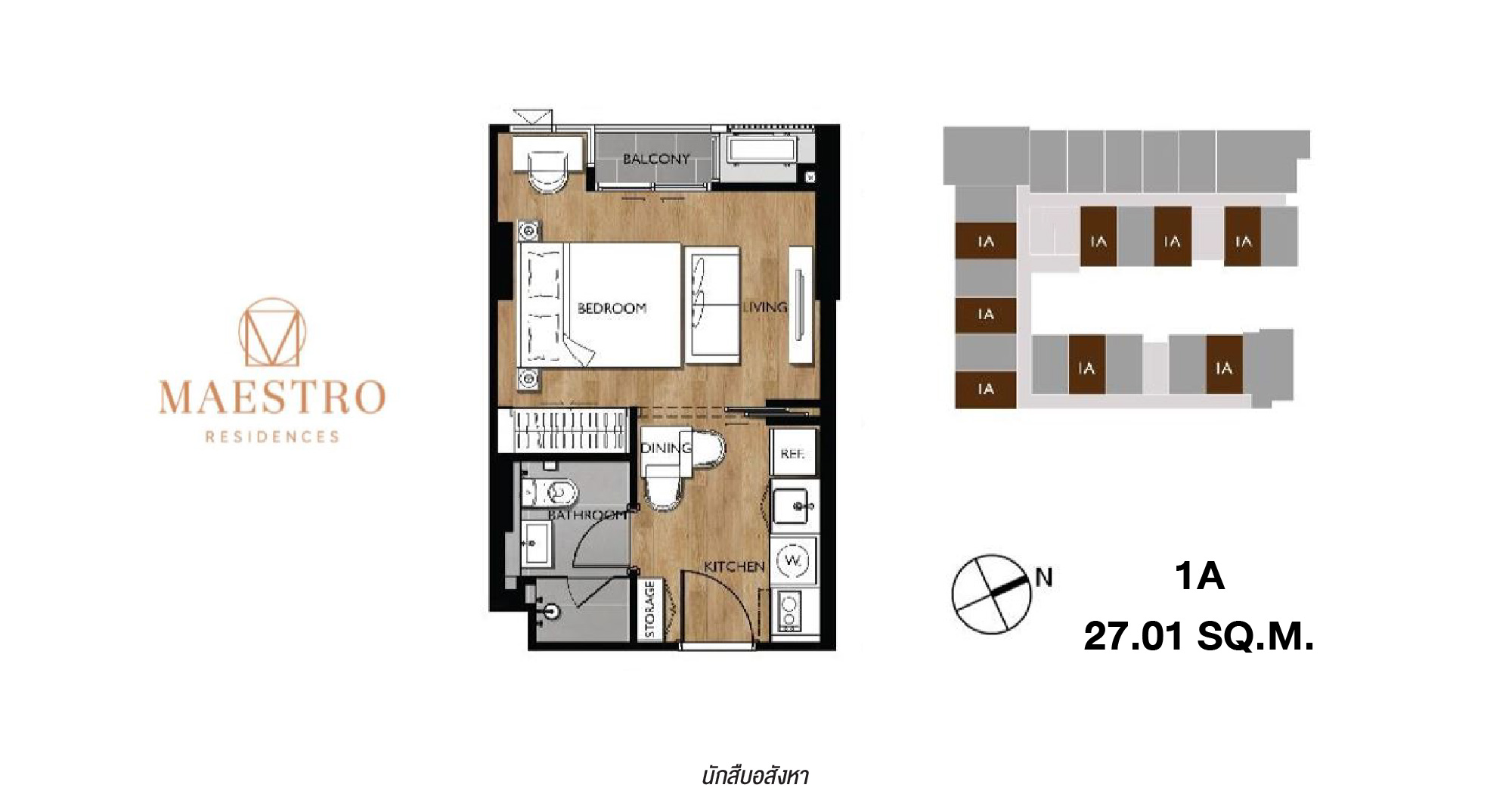 27.01 ตร.ม. ห้องแปลนตอนลึก เน้นจัดสรรพื้นที่ในห้องนอน