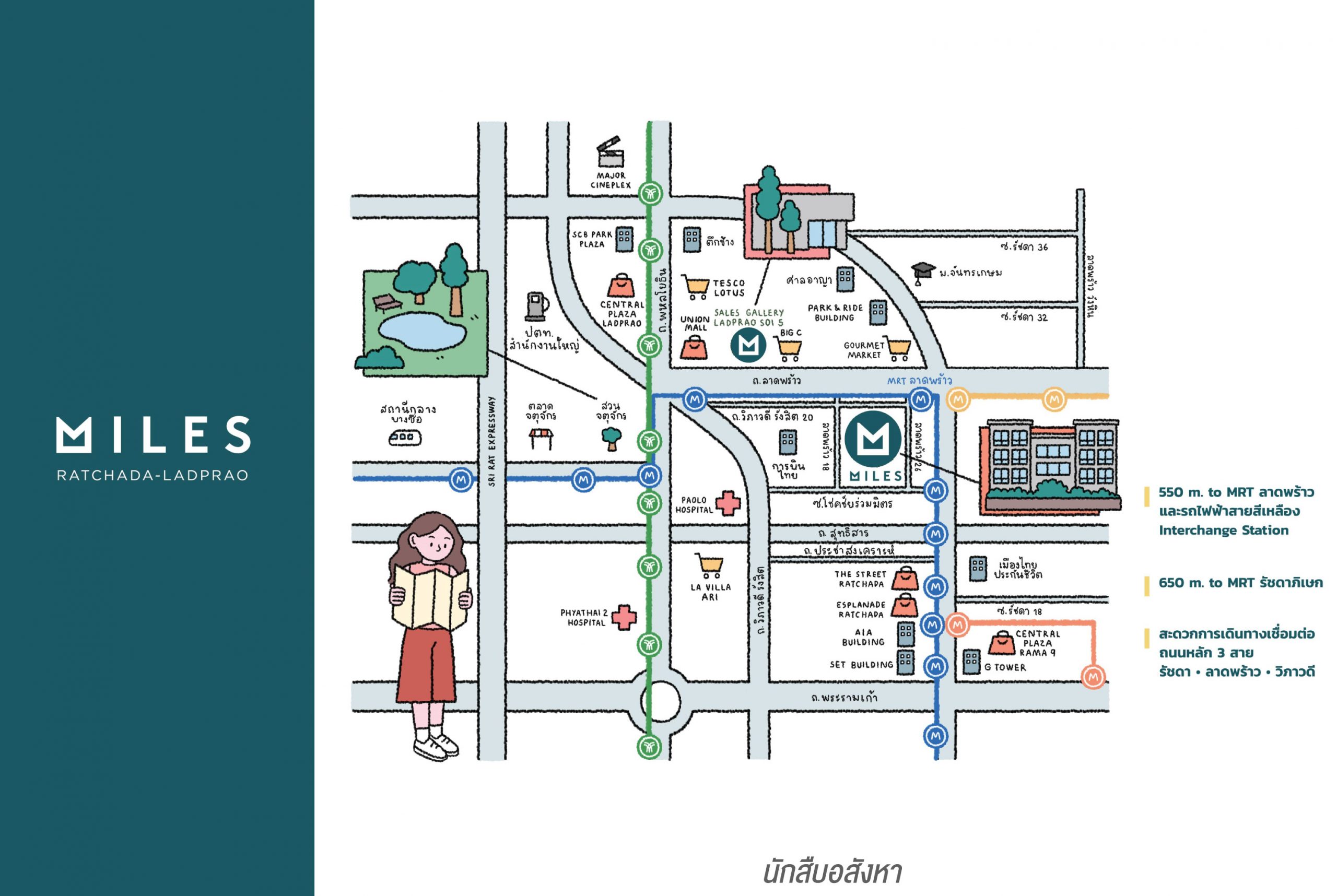 ทำเลน่าจับตาของกรุงเทพฯ ทุกวันนี้ ถ้าพูดย่านที่มีครบและตอบโจทย์ได้ทุกไลฟ์สไตล์จริงๆ ผมยอมรับว่าหนึ่งในนั้นจะต้องมีทำเล “รัชดา – ลาดพร้าว” ติดโพมาด้วยอย่างแน่นอน เพราะต้องยอมรับว่าทำเลนี้เป็นอีกทำเลที่เป็นเหมือนย่านธุรกิจที่ผสมผสานระหว่าง “ที่อยู่อาศัย” และ “การทำงาน” ไว้ด้วยกันอย่างลงตัว กลายเป็นว่าย่านรัชดา – ลาดพร้าว เป็นอีกย่านที่เต็มไปด้วยเสน่ห์มากมาย และแน่นอนครับว่าความน่าสนใจของย่านนี้ย่อมเป็นที่หมายปองของเหล่า Developer อย่างแน่นอน ซึ่งหนึ่งในนั้นก็คือ Major Development ที่ได้เข้ามาตีตลาดทำเลนี้อีกครั้งด้วยการปล่อยโครงการใหม่ล่าสุดอย่าง “Miles รัชดา – ลาดพร้าว” ที่มีคอนเซ็ปต์น่าสนใจภายใต้แนวคิด “Own Your Journey” ด้วยการเปรียบชีวิตเป็นดั่งการเดินทาง และความสำเร็จของแต่ละช่วงเวลาคงเป็นดั่งการสะสมไมล์นั่นเองครับ ซึ่งครั้งนี้ผมว่าค่อนข้างน่าสนใจมากกว่าทุกครั้ง เพราะ Major ทำคอนโดฯ Luxury มาตลอด และครั้งนี้เป็นการหันมาจับคอนโดฯ Low Rise ในทำเลศักยภาพอีกด้วย เรียกได้ว่าเปิดตัวแบรนด์มาได้น่าสนใจขนาดนี้ โครงการนี้จะต้องมีมากกว่าการเป็นที่อยู่อาศัยธรรมดาๆ อย่างแน่นอน แต่ก่อนอื่น… เราไปดูความน่าสนใจของทำเลนี้กันก่อนดีกว่าครับ