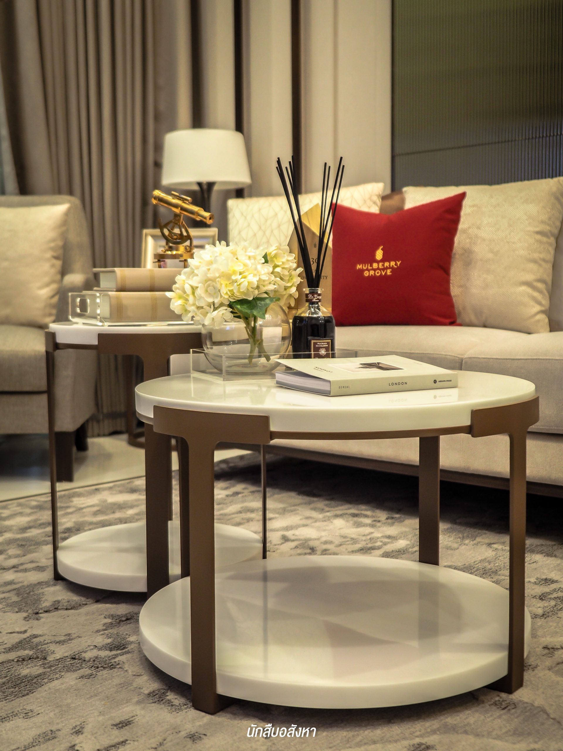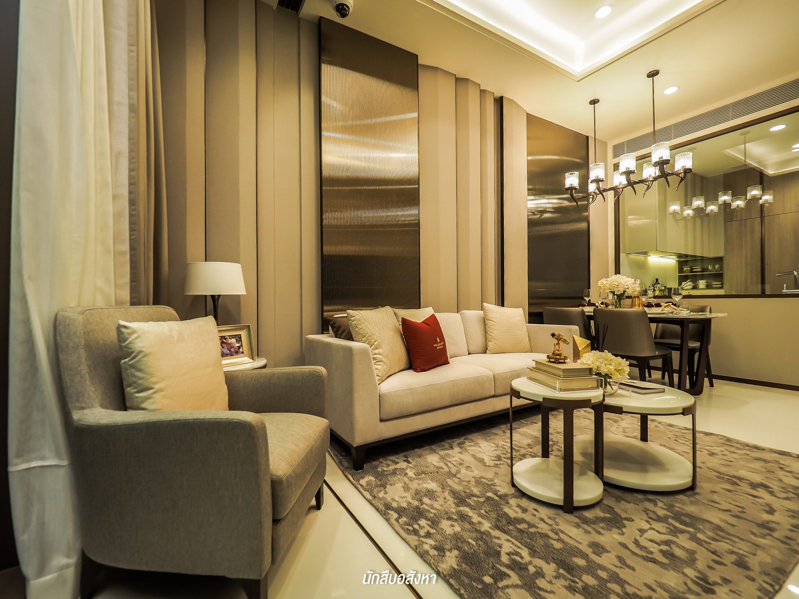 Mulberry Greeting Gallery : สำหรับพื้นที่ต้อนรับจะอยู่ที่ชั้น 1 ครับ การตกแต่งเป็นโถงสูงที่ดูโอ่อ่า เน้นความหรูหรา มุมนี้ยังใช้เป็นมุมพักผ่อนของลูกบ้านได้อีกด้วยครับ