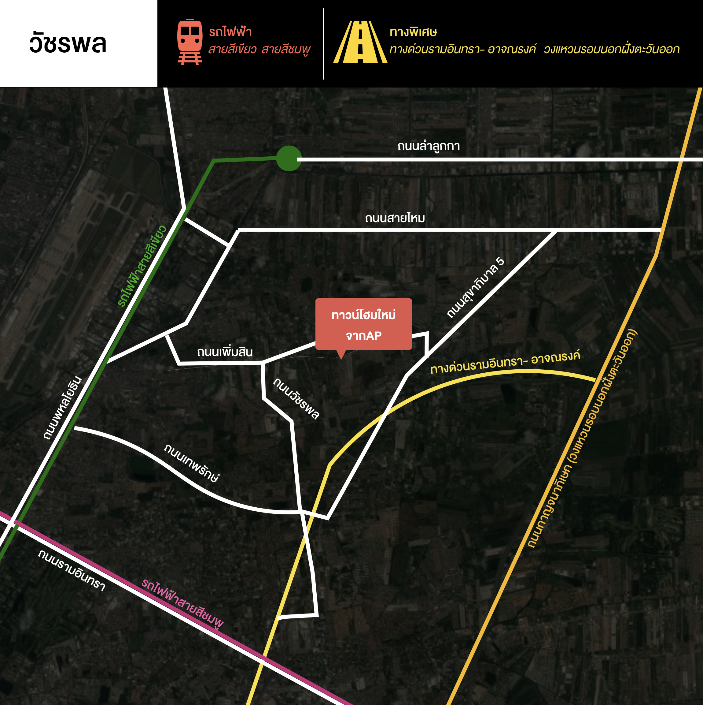 วัชรพลถือเป็นอีกหนึ่งทำเลมาแรง จัดว่าเป็นทำเลที่ดีของกรุงเทพฝั่งตะวันออกตอนเหนือ และคึกคักเป็นพิเศษเห็นจะเป็นที่อยู่อาศัยโดยเฉพาะแนวราบที่มีการเติบโตอย่างเห็นได้ชัด ด้วยภูมิทัศน์ของทำเลที่ถูกจัดให้เป็นเขตพื้นที่ที่อยู่อาศัยหนาแน่นน้อย ไม่พลุกพล่านวุ่นวายมากนักนั่นเองครับ ซึ่งวัชรพลอยู่ในเขตสายไหม มีถนนเส้นหลักและเส้นรองที่สามารถเชื่อมเข้า – ออกตัวเมืองได้สะดวกสบาย โดยเฉพาะบนถนน “สุขาภิบาล 5” เพราะล้อมรอบไปด้วยทางพิเศษและถนนสายหลัก ได้แก่ ทางด่วนรามอินทรา – อาจณรงค์ และยังอยู่ใกล้เคียงกับวงแหวนรอบนอก กาญจนาภิเษกที่สามารถเดินทางไปยังพื้นที่ชั้นนอกรอบๆกรุงเทพฯ ได้ รวมถึงถนนเส้นเพิ่มสิน หรือถนนเทพารักษ์ ที่สามารถเชื่อมต่อรถไฟฟ้าและถนนพหลโยธินได้อย่างง่ายดาย