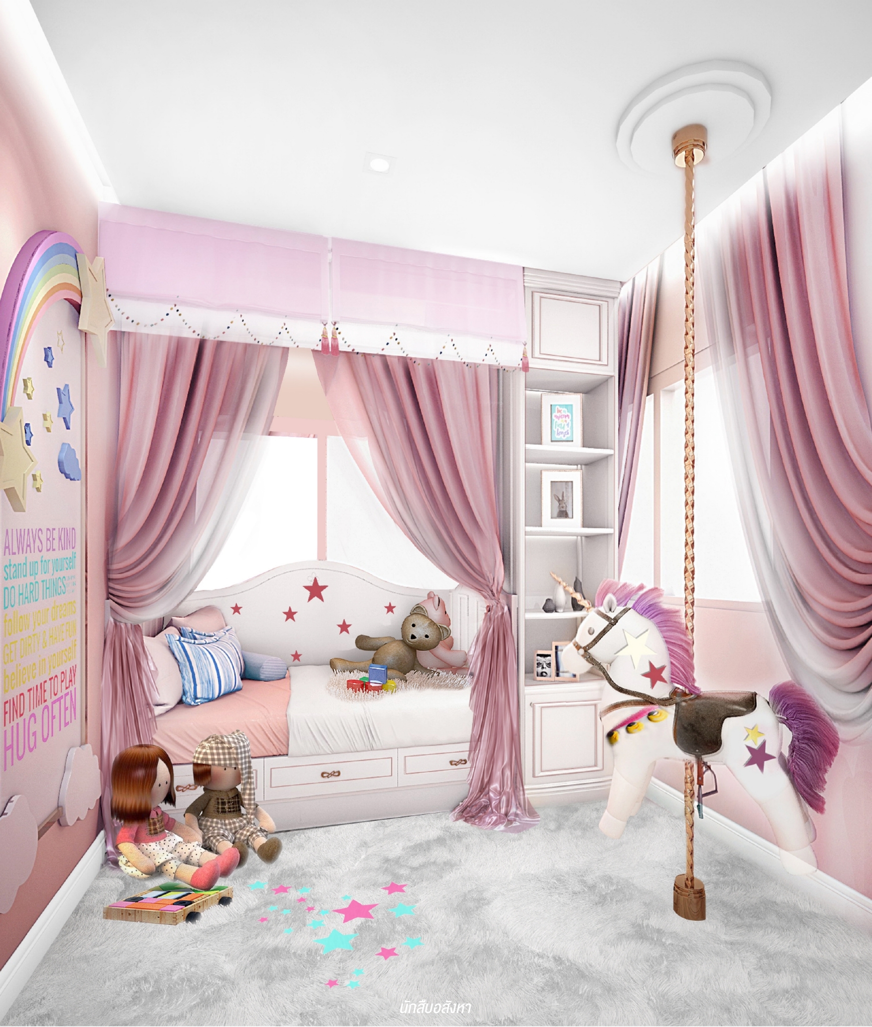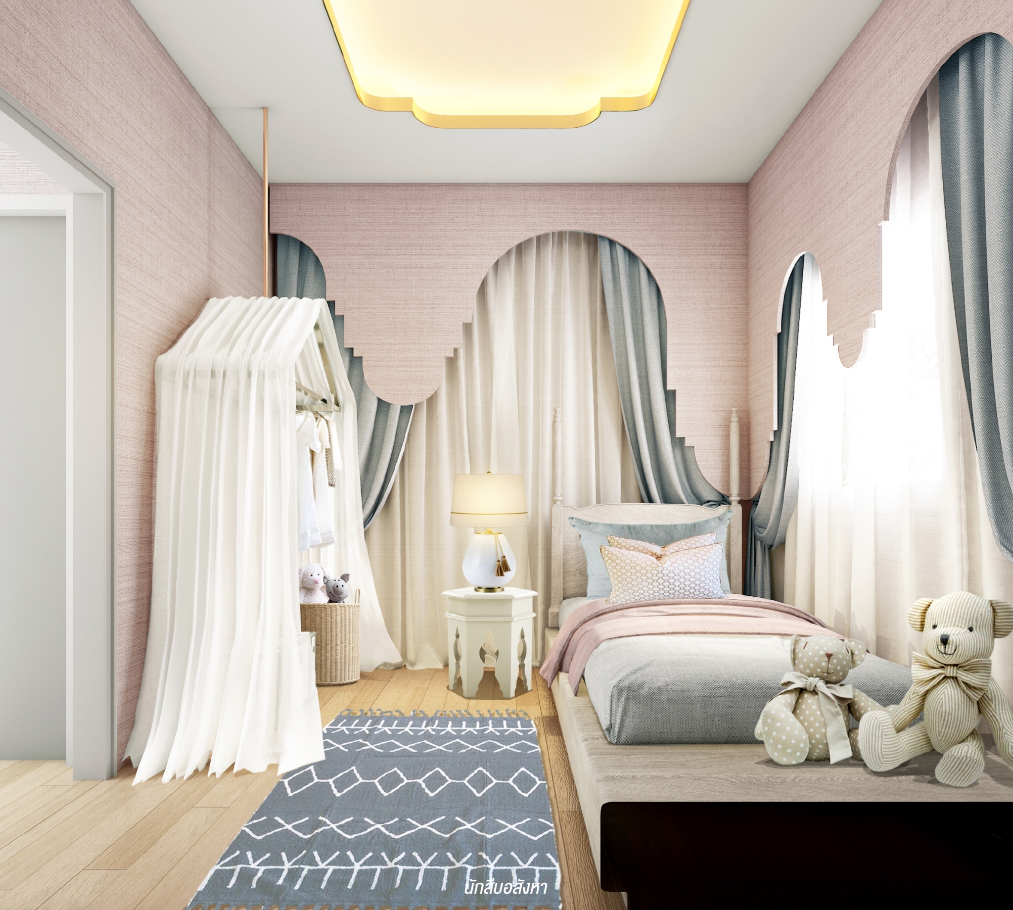 ชั้น 2 : ขึ้นมาชั้น 2 จะเจอห้องน้ำอยู่ตรงกลาง ซึ่งผมชอบนะครับ เพราะข้างบนจะมีห้องอยู่หลายห้อง ทำให้แชร์การใช้ห้องน้ำสะดวกดีครับ ทางด้านซ้ายมือ จะเป็นห้อง Master Bedroom ที่มีจุดเด่นเป็นห้องขนาดใหญ่ หัวเตียงจะหันไปทางหน้าต่าง ซึ่งได้รับแสงธรรมชาติ ทำให้ห้องดูโปร่งและสว่าง ด้านขวามือของห้องจะเป็น Walk-in Closet ซึ่งเป็นพื้นที่ที่สามารถปรับฟังก์ชันทำเป็นฟังก์ชันอื่นได้ เช่น เพิ่มโต๊ะทำงาน เป็นต้น ด้านซ้ายมือของห้องนี้จะเป็น โซฟานั่งเล่น และทางด้านหน้าประตูก็วางทีวีครับ มาดูห้องทางด้านขวามือกันบ้างดีกว่าครับ ทางด้านขวามือ จะมีห้อง 2 ห้อง คือ ห้องนอน 2 สามารถทำเป็นห้องนอนลูกหรือห้องนอนญาติของเราได้ ส่วนอีกห้องนึง เป็นห้องอเนกประสงค์ จัดเป็นห้องรับแขก, ห้องทำงาน หรือห้องสันทนาการอื่นๆ ก็ได้ครับ