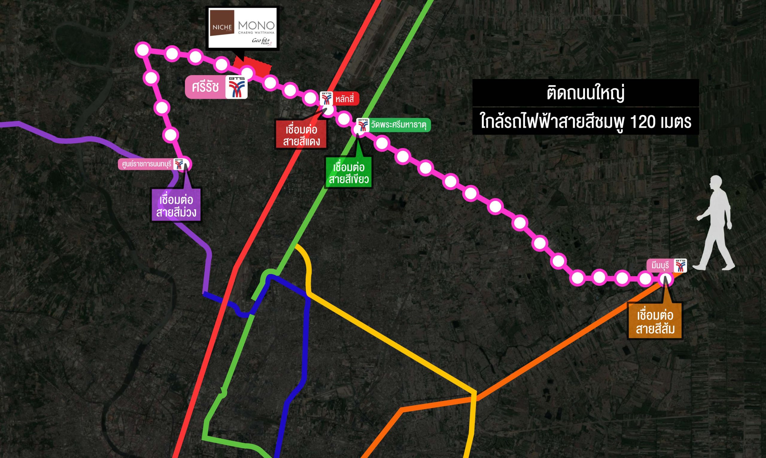 ✔️ เชื่อมต่อกับรถไฟฟ้าสายสีม่วง สถานีศูนย์ราชการนนทบุรี (ใกล้กับแยกแคราย)