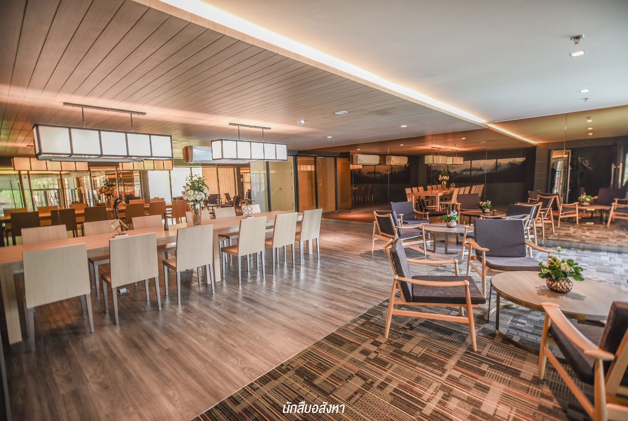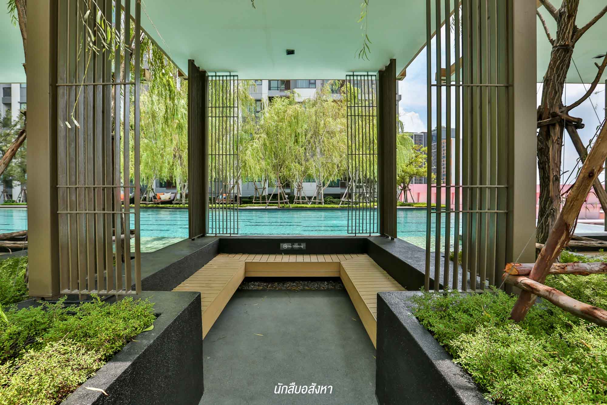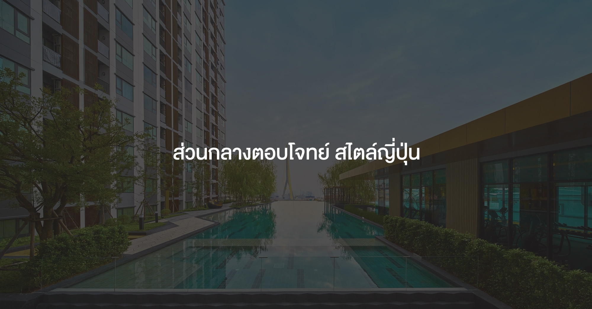 ส่วนกลางของที่นี่ ผมต้องยอมรับเลยครับว่าตอบโจทย์และมีสไตล์สำหรับคนรุ่นใหม่ เพราะเป็นสไตล์แบบญี่ปุ่น เน้นความร่มรื่น ตามแนวคิด “Mura” A Village within Nature ที่ใกล้ชิดต้นไม้กับสายน้ำ สระว่ายน้ำยาว 40 เมตร