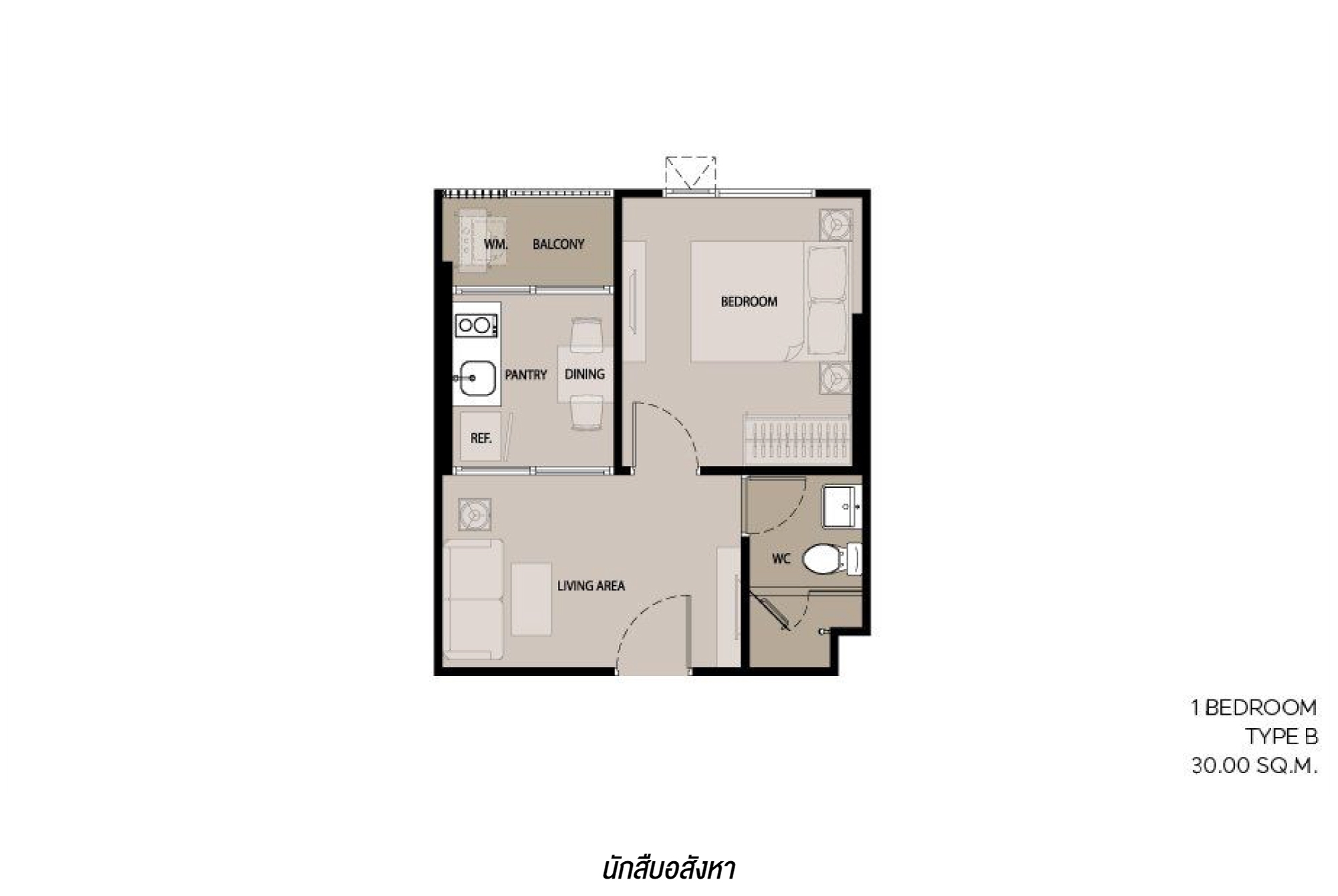 1 Bedroom ขนาด 30 ตร.ม. ฟังก์ชันครบ อยู่ได้จริงไม่อึดอัด