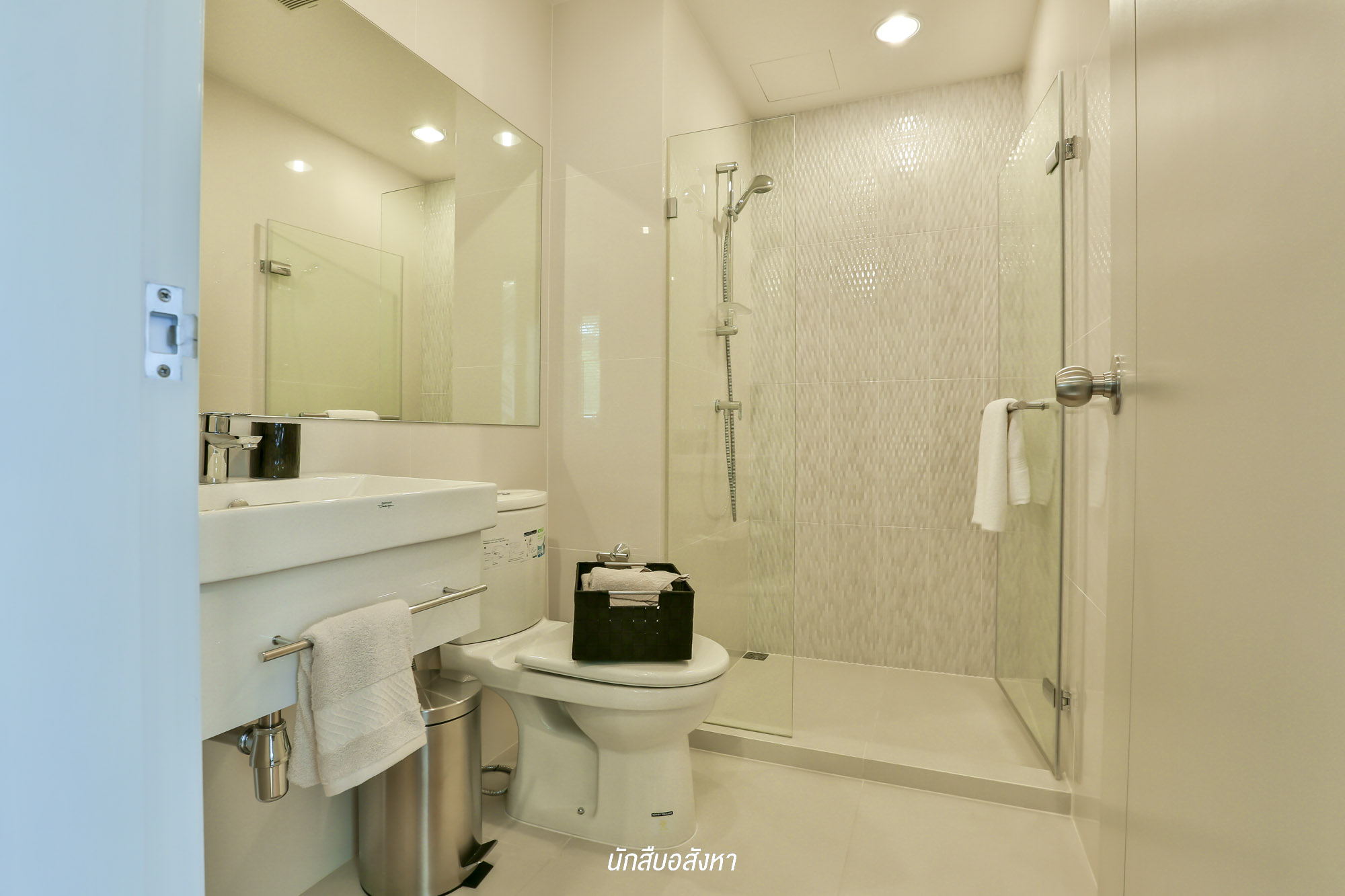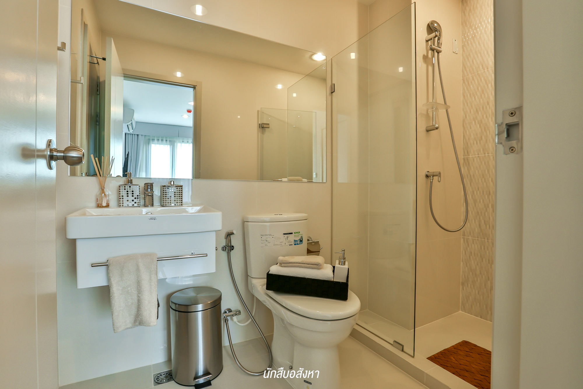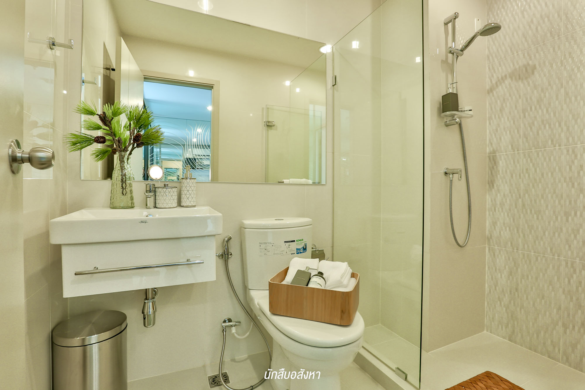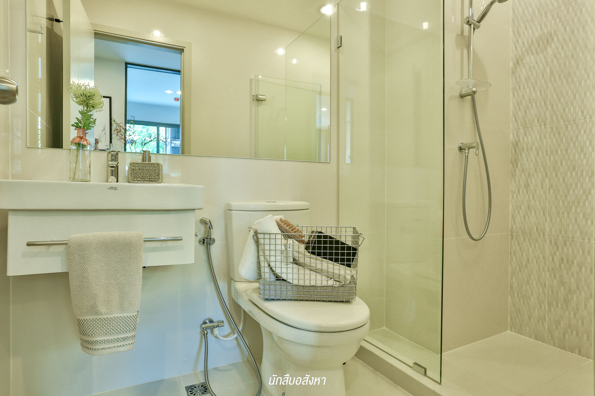 ห้องอเนกประสงค์ จะทำเป็นห้องนอนเล็กก็ได้ แต่ห้องตัวอย่างเอาใจคุณสาวๆ ที่ Prop เยอะ ชุดเยอะ โดยการ Built เป็นโต๊ะเครื่องแป้ง กับห้องแต่งตัว ห้องน้ำกว้าง ปูผนังด้วยกระเบื้อง และสุขภัณฑ์ครบ กั้นส่วนเปียกและแห้งให้แล้ว