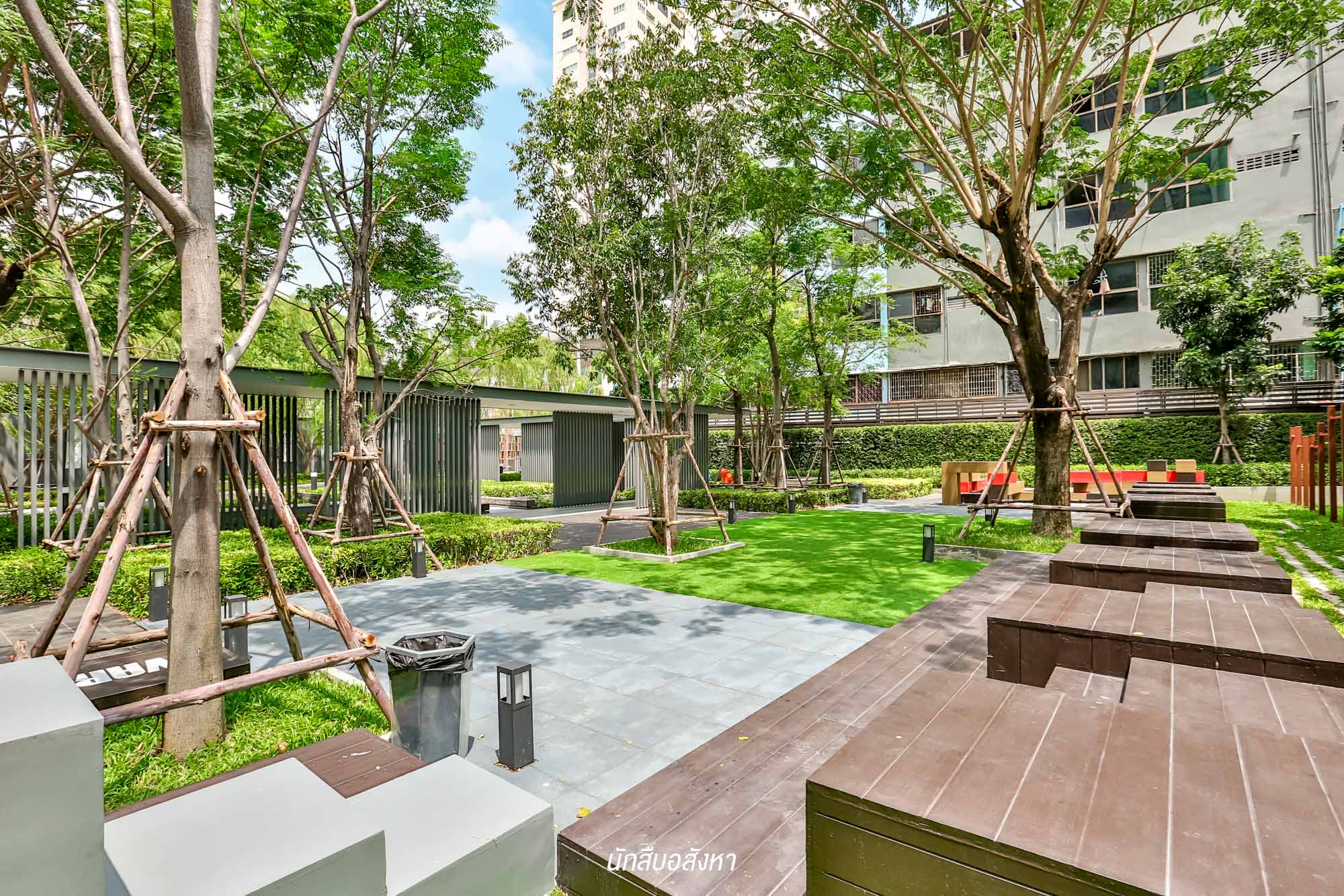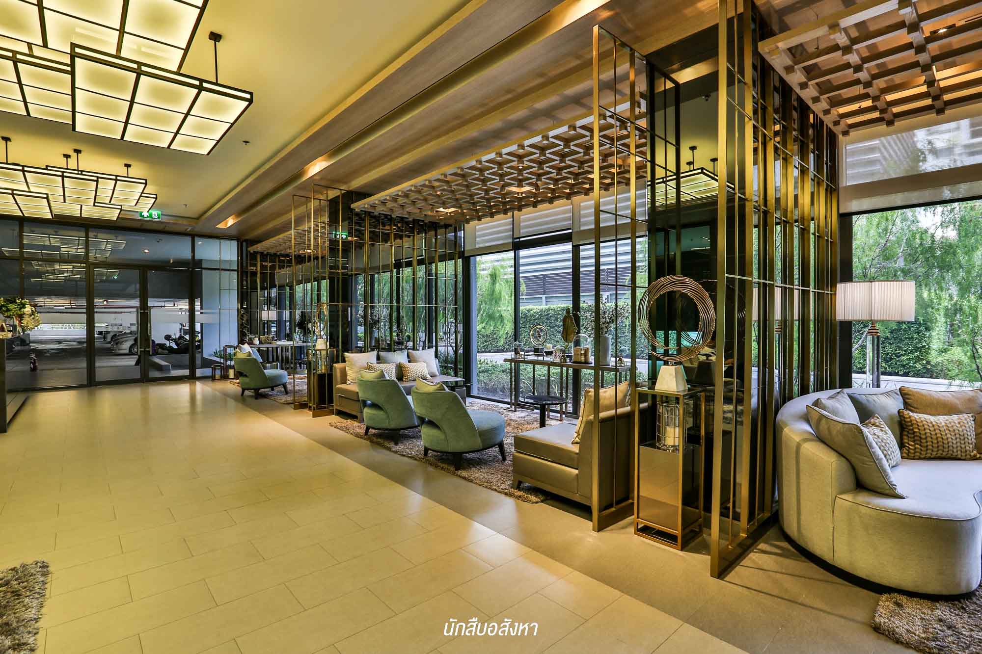 เริ่มตั้งแต่พื้นที่ส่วนกลาง ที่มีพื้นที่รวมกันเกือบ 2 ไร่ จากที่ดินโครงการประมาณ 4.3 ไร่ เรียกได้ว่าใหญ่พอตัวเลยทีเดียวครับ สวนด้านหน้า ออกแบบมาช่วยบดบังทัศนยภาพรอบข้างที่เป็นตึกและบ้านพักอาศัยได้ดีครับ เข้ามาแล้วรู้สึกได้ถึงความเขียวเชียว มาต่อที่ Lobby ที่ให้อารามณ์โรงแรมญี่ปุ่น 5 ดาวเลยครับ