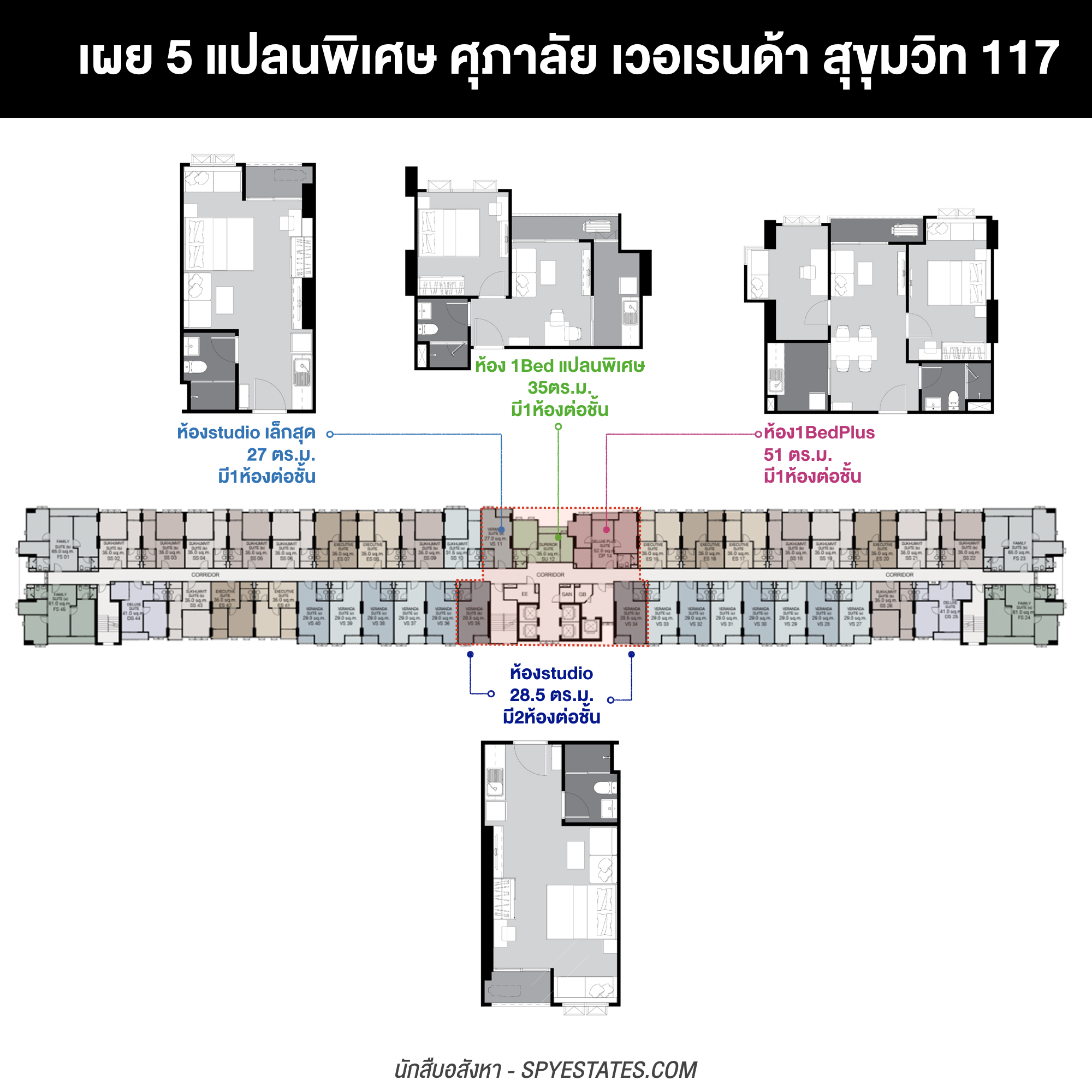 - Studio : 27.00 – 29.00 ตร.ม.