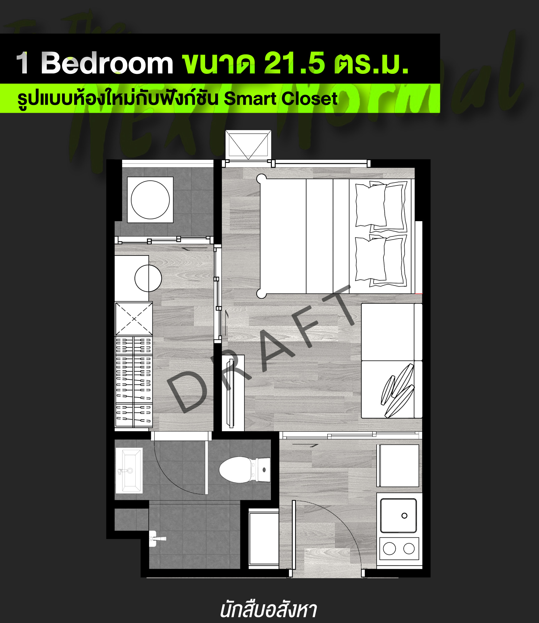 1 Bedroom ขนาด 21.5 ตร.ม.