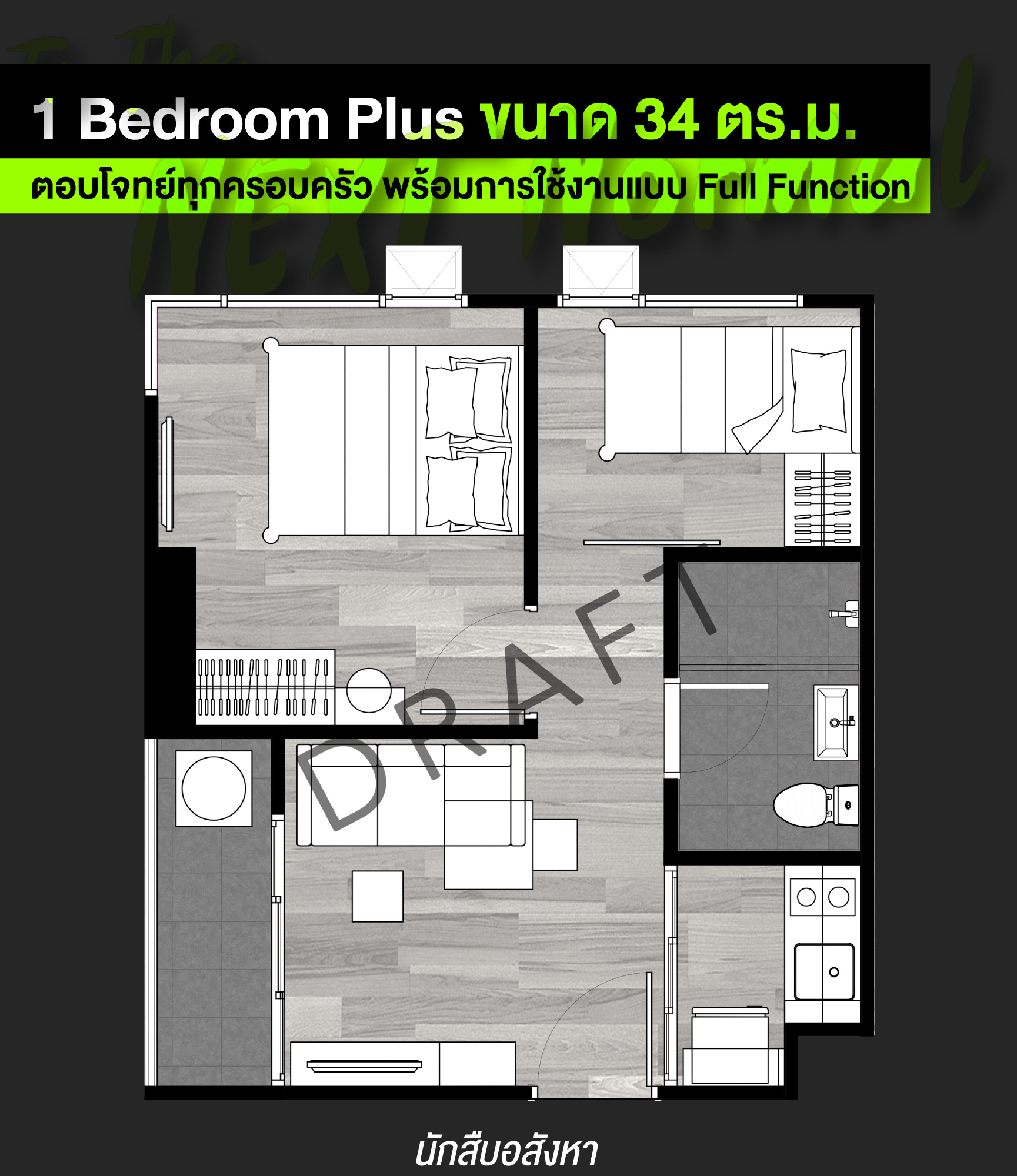 1 Bedroom Plus ขนาด 34 ตร.ม.
