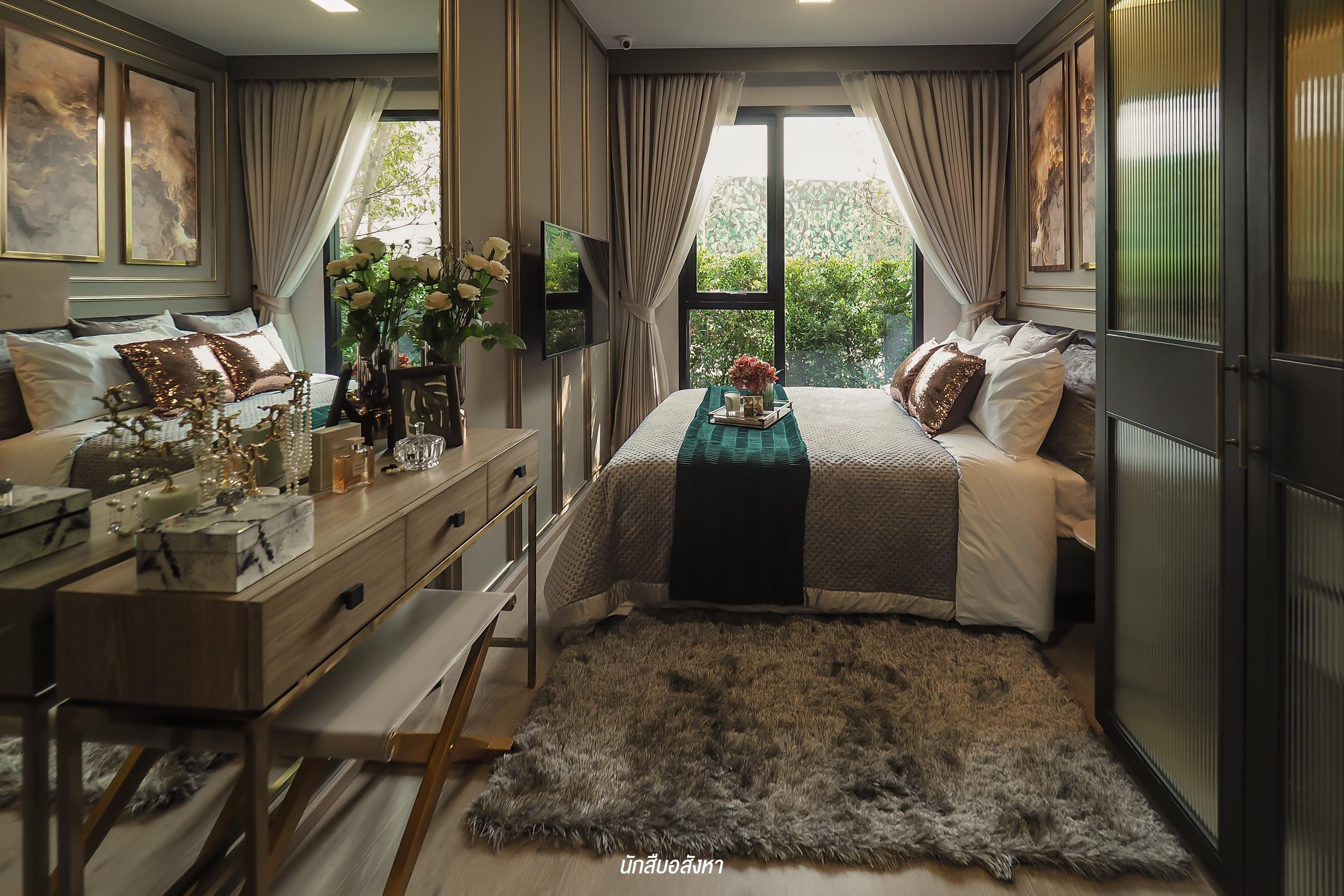 การมาทีหลัง ก็ต้องมาแบบเป็นทางเลือกที่คุ้มค่าและน่าสนใจ ทางโครงการจึงจัดเต็มในเรื่องของดีไซน์และคอนเซ็ปท์ ให้สามารถเข้าถึงความหรูหราสวยงาม ได้ในคอนโดราคาเริ่มไม่ถึง 2 ล้าน ซึ่งเขามาใน คอนเซ็ปท์ Tropical Luxury พูดง่ายๆ คือ เน้นความร่มรื่นป่าไม้ + ความหรูหราน่าอยู่ ซึ่งตัวอาคารนั้นได้ ออกแบบให้เหมือนเส้นกลีบดอกไม้ และการตกแต่งภายในเน้นความหรู ทั้งหินอ่อนธรรมชาติและการตกแต่งสีทอง มารวมกับใบไม้เขตร้อน ได้ฟิลลิ่งดีเหมือนไปคาเฟ่ชิคๆ หรือโรงแรมแนวใหม่น่าถ่ายรูป