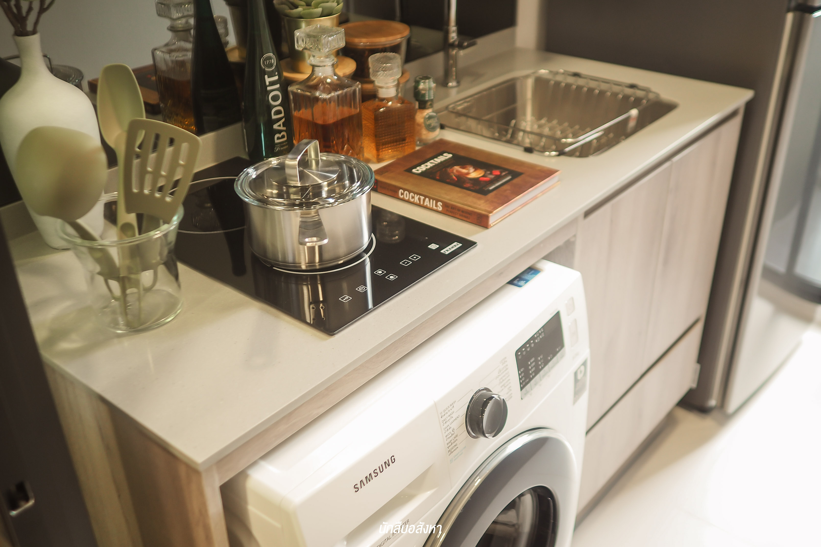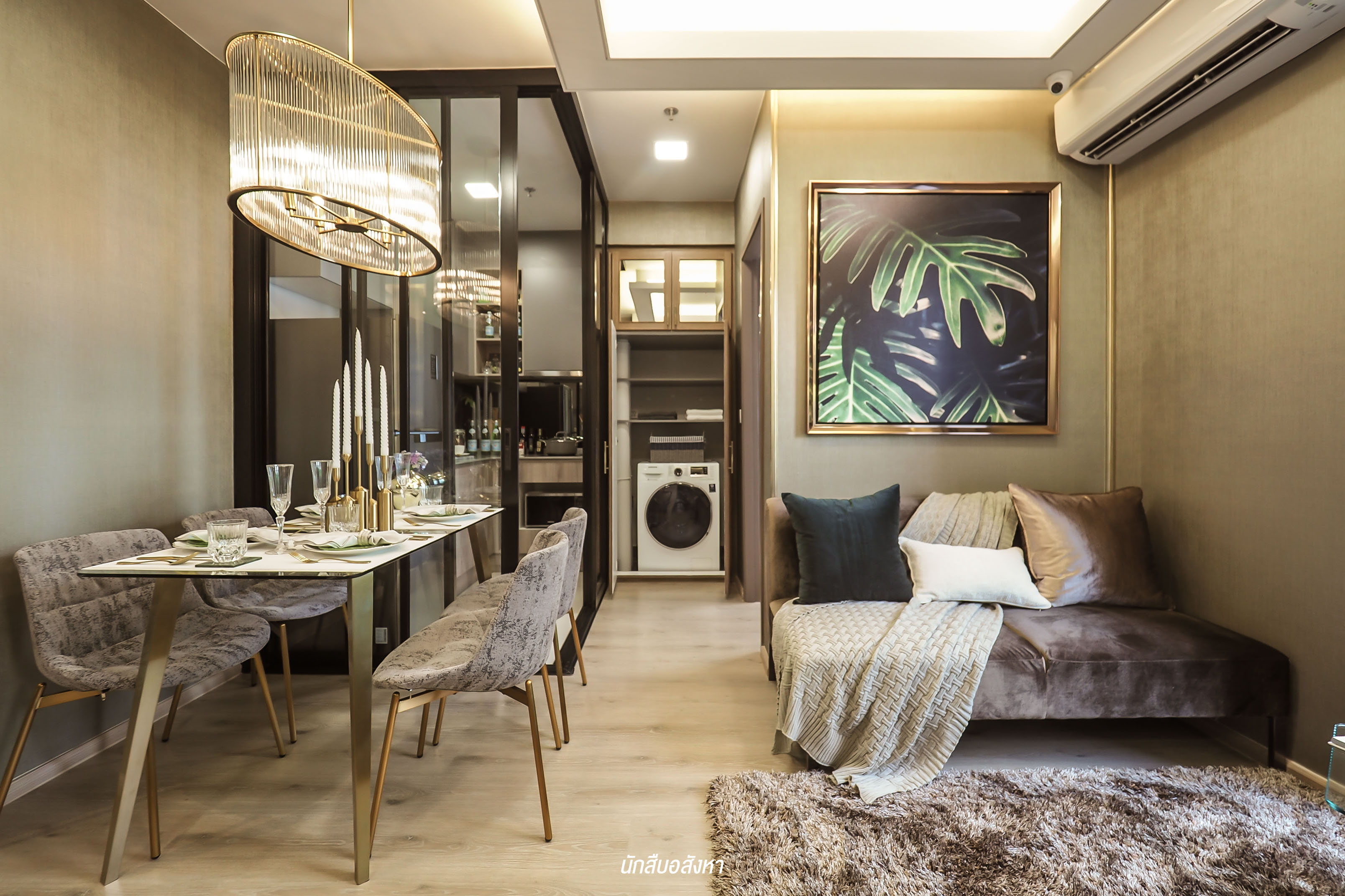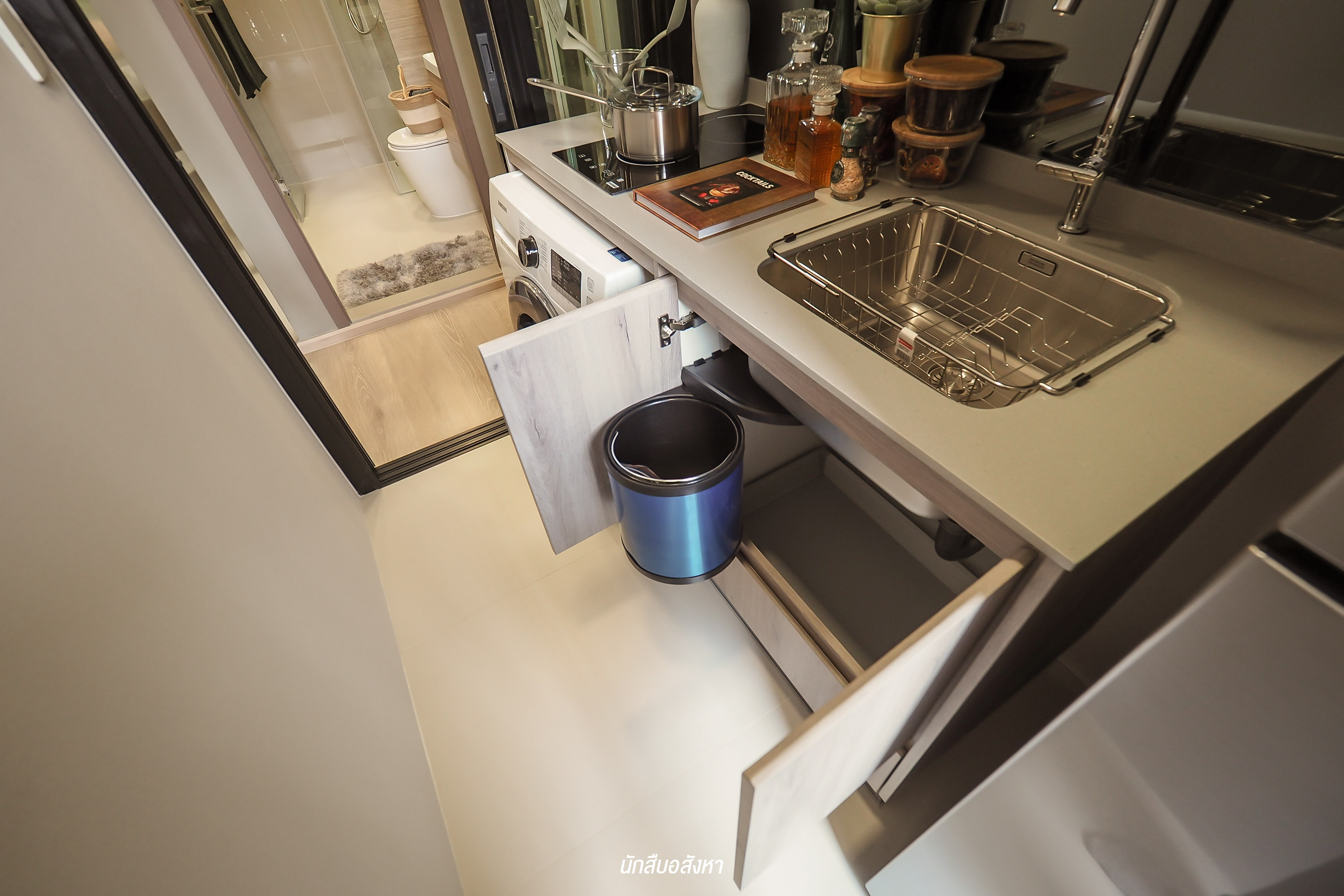 ห้องนี้ ผมชอบตรงที่ Layout จัดออกมาได้ลงตัวและ ครัวเป็นแบบปิดกั้นด้วยกระจก ครัวเป็นแบบ L-Shape ยิ่งทำให้พื้นที่จัดสรรง่ายต่อการใช้งาน มีพื้นที่วางเรื่องซักผ้าและยังทำเป็นชั้นวางของได้ใช้งานเพิ่มขึ้นด้วยครับ