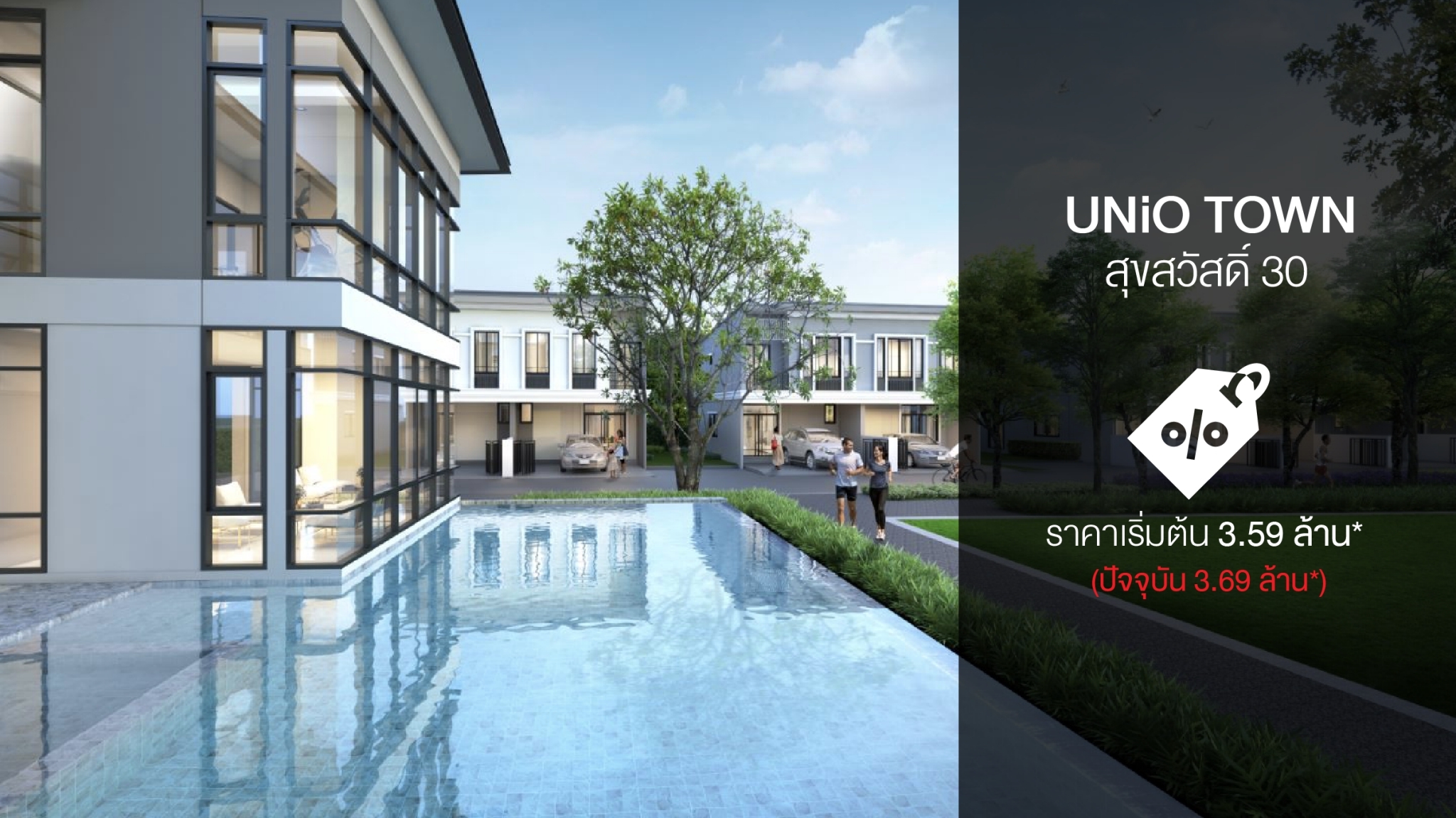 มาถึงโครงการล่าสุดอย่าง “UNiO TOWN สุขสวัสดิ์ 30” ที่เปิดตัวในปีนี้ด้วยราคาเริ่ม 3.59 ล้าน* (ปัจจุบันราคาเริ่ม 3.69 ล้าน*) ถือว่าเป็นทาวน์โฮมที่ราคาสูงสุดของแบรนด์ UNiO TOWN แต่ได้ความคุ้มค่าเทียบเท่าบ้านเดี่ยวราคา 5-7 ล้าน เพราะทางทีมผู้พัฒนาต้องการให้ Product ยกระดับความพรีเมียมมากขึ้นนั่นเอง แต่ราคาก็ยังจับต้องได้อยู่นะครับ