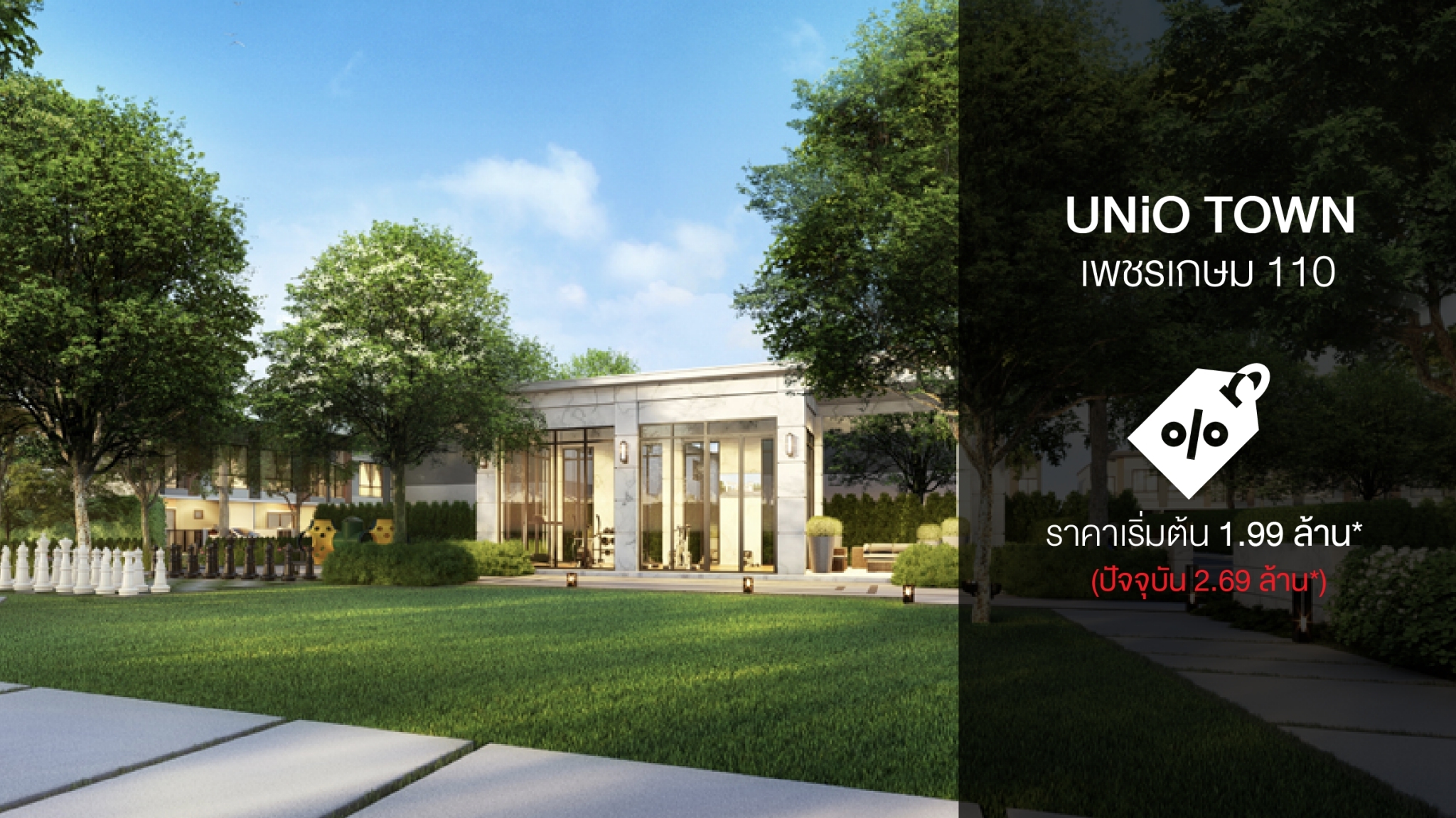 มาต่อกันที่โครงการ “UNiO TOWN เพชรเกษม 110” ราคาเปิดตัวเริ่ม 1.99 ล้าน* (ปัจจุบันเริ่ม 2.69 ล้าน*)